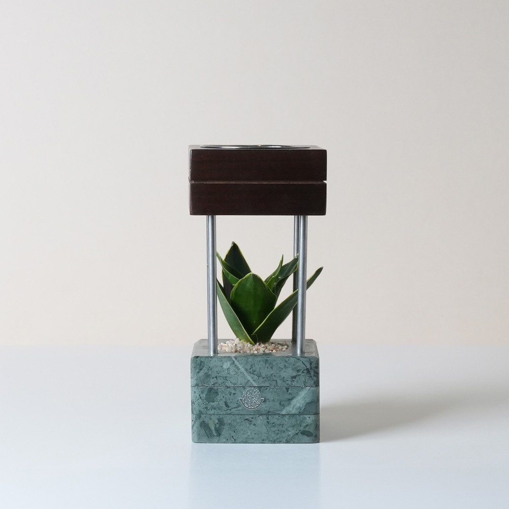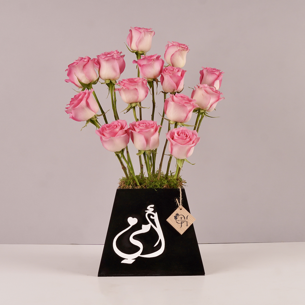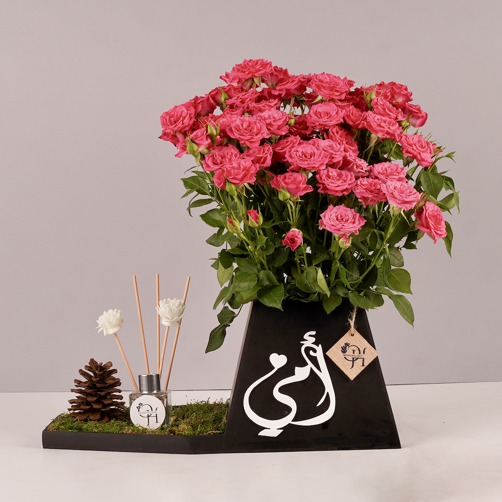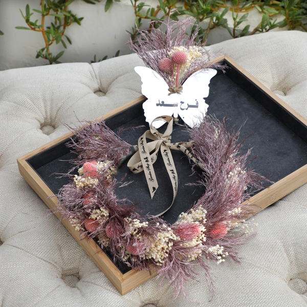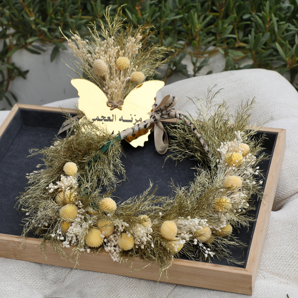 نباتات الأوركيد البيضاء في صندوق من الخشب، مع بالونات على شكل نجمة.