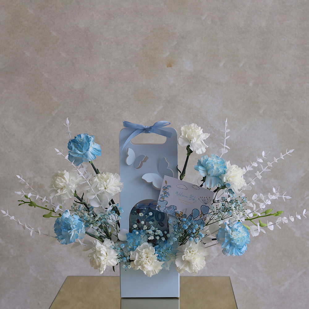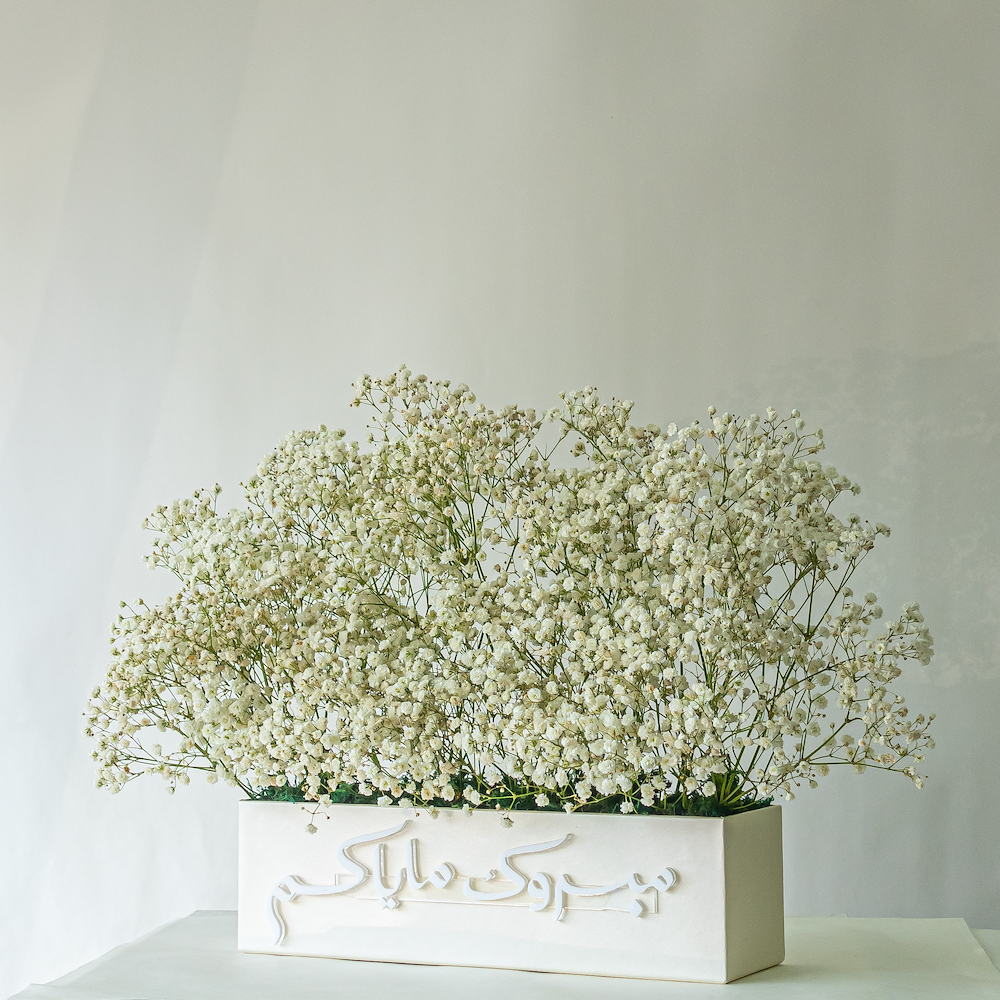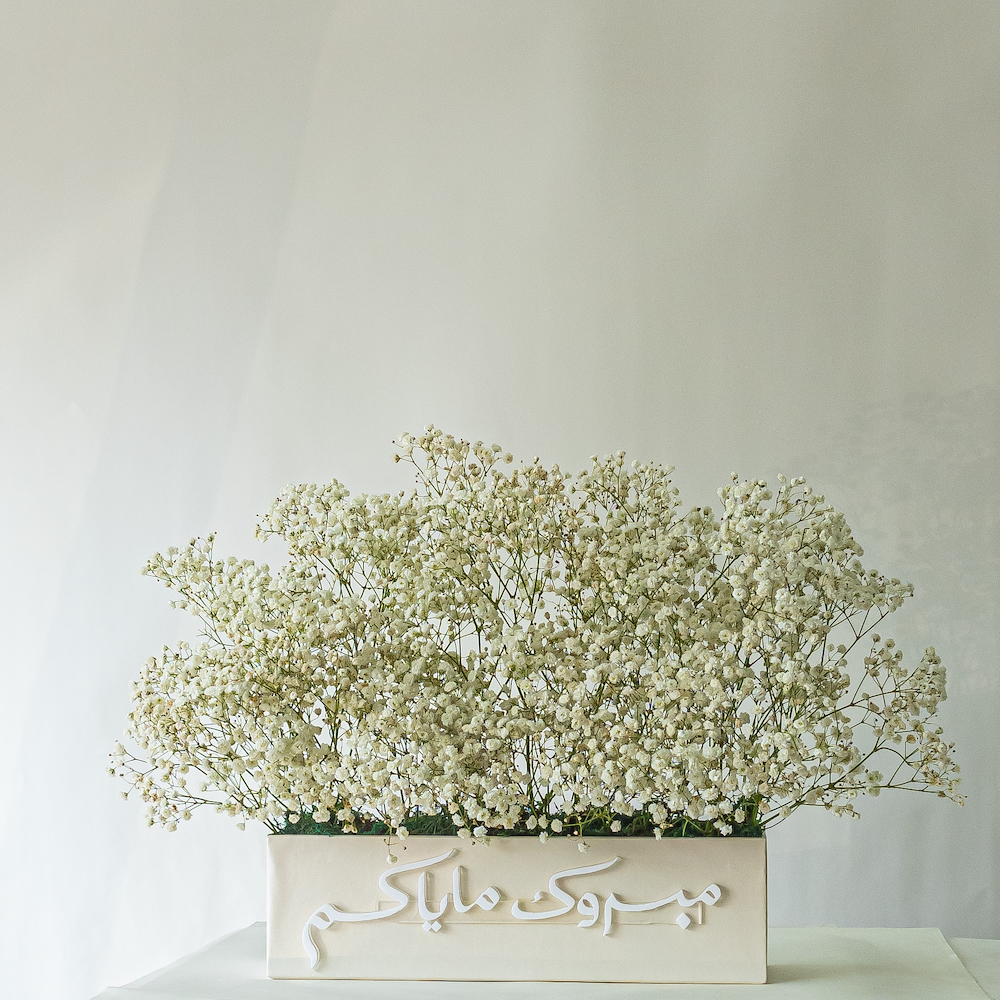 بوكس يحتوي على زهور الجبسوفيلا البيضاء.