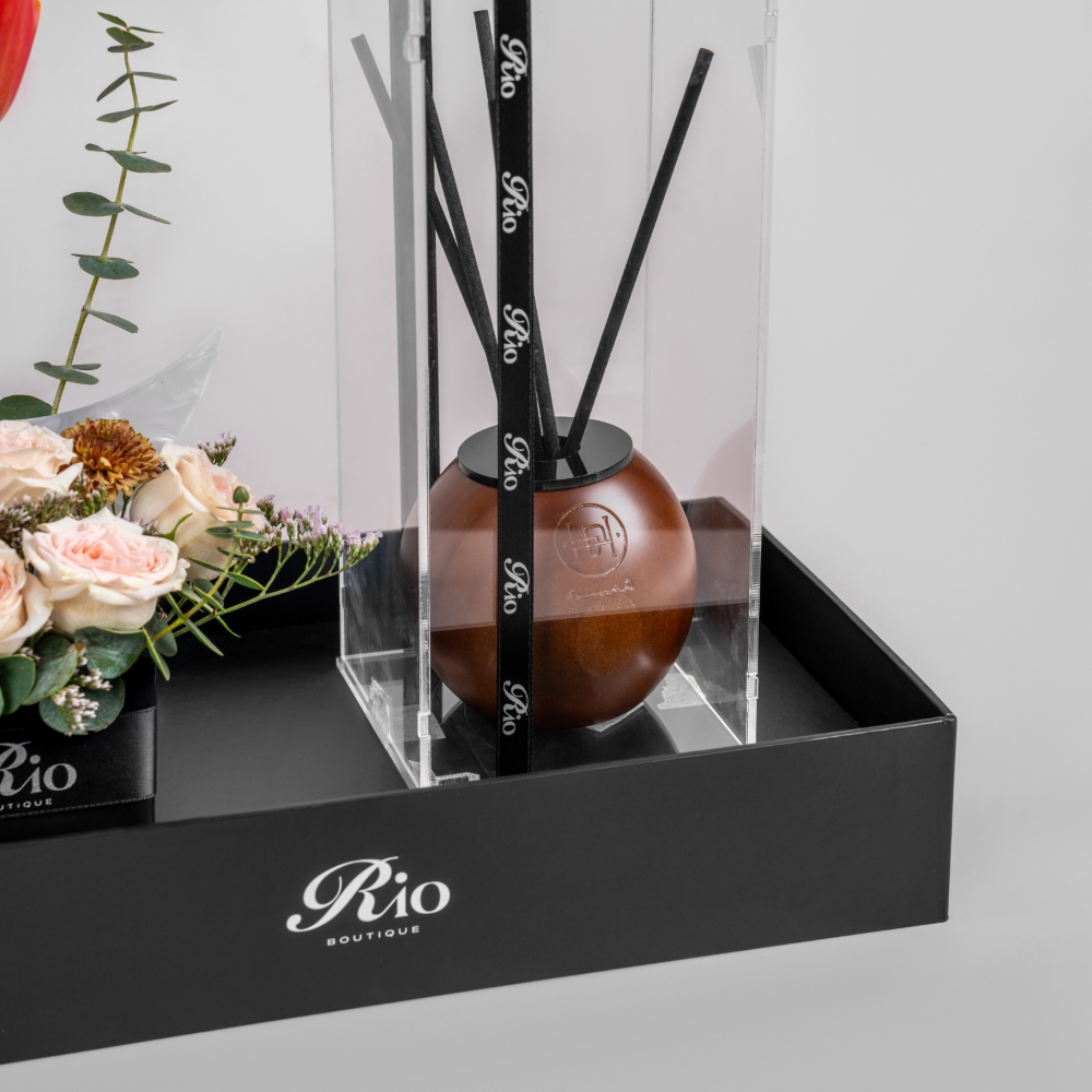 صينية أنيقة تجمع بين زهور التوليب، البيبي جوري والكريز مع فواحة عطر "همسة" وتغريسة رمضان الاحتفالي. قطعة مركزية روحانية وعطرية صممت لتملأ مساحتك برائحة هادئة وأسلوب عصري.