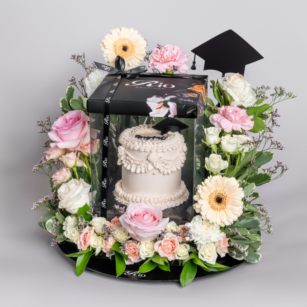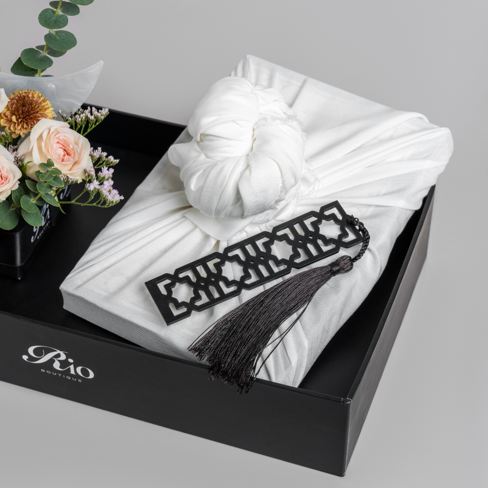 صينية هادفة تضم زهور التوليب، البيبي جوري والكريز مع المصحف الشريف وتغريسة رمضان الأنيقة. تحفة فنية راقية صممت لتكريم الجوهر الروحاني للشهر الفضيل بالجمال والعبادة.