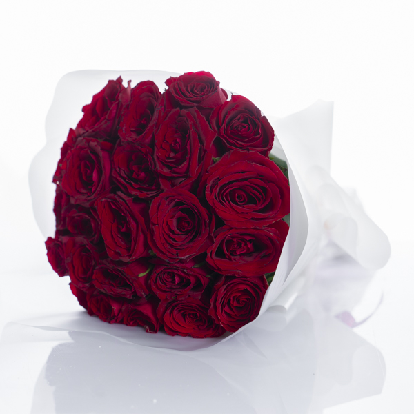 هذه الباقة تحتوي على 25 من زهور الجوري بلون الأحمر.