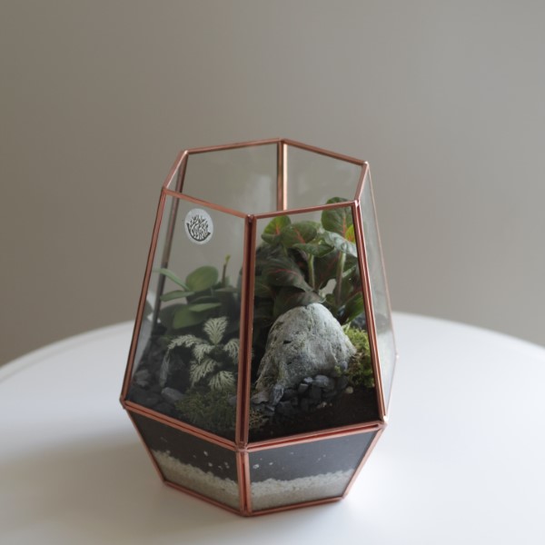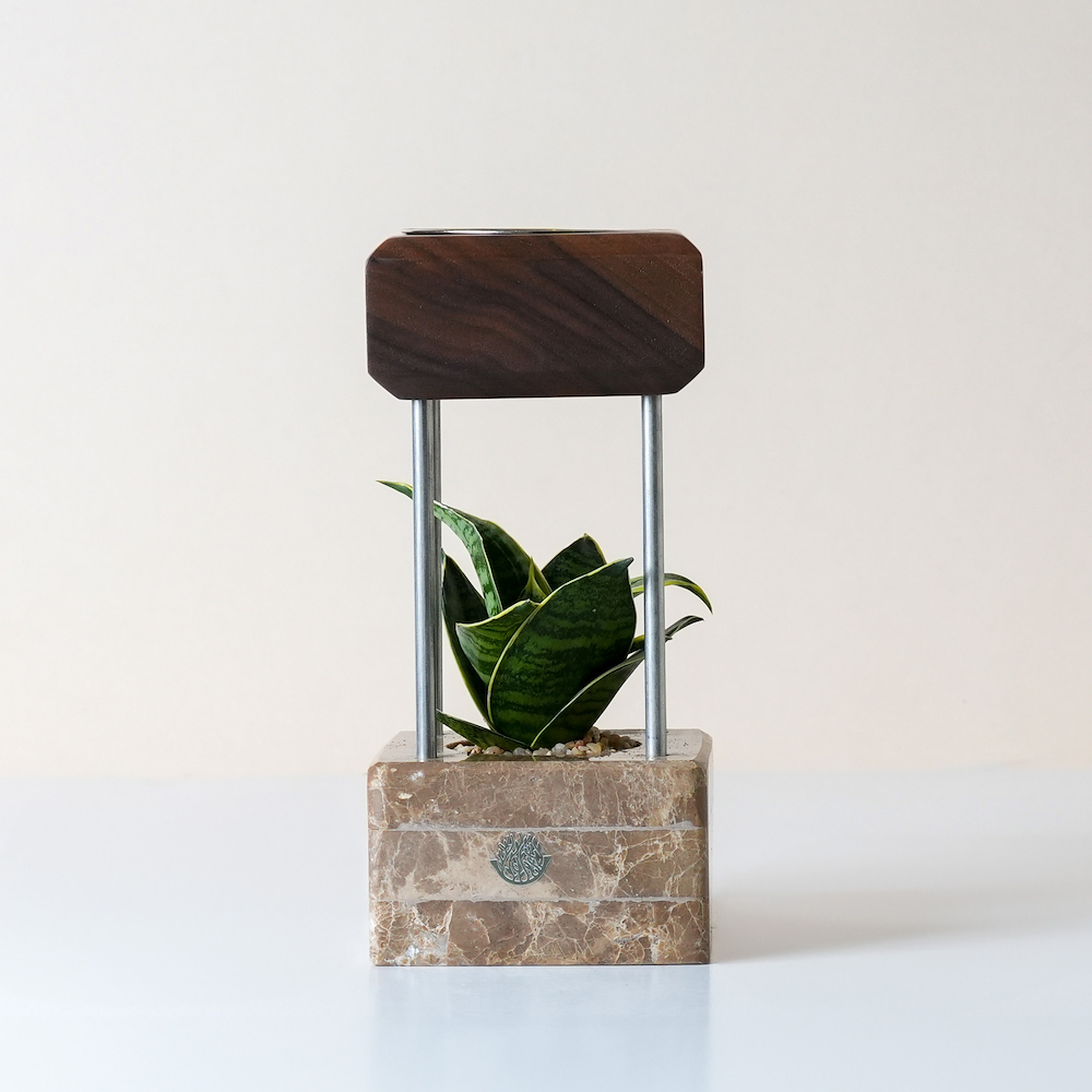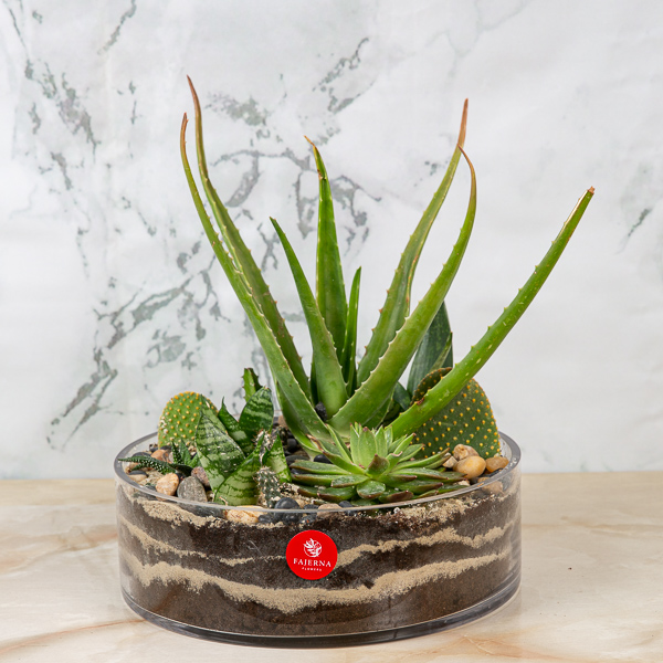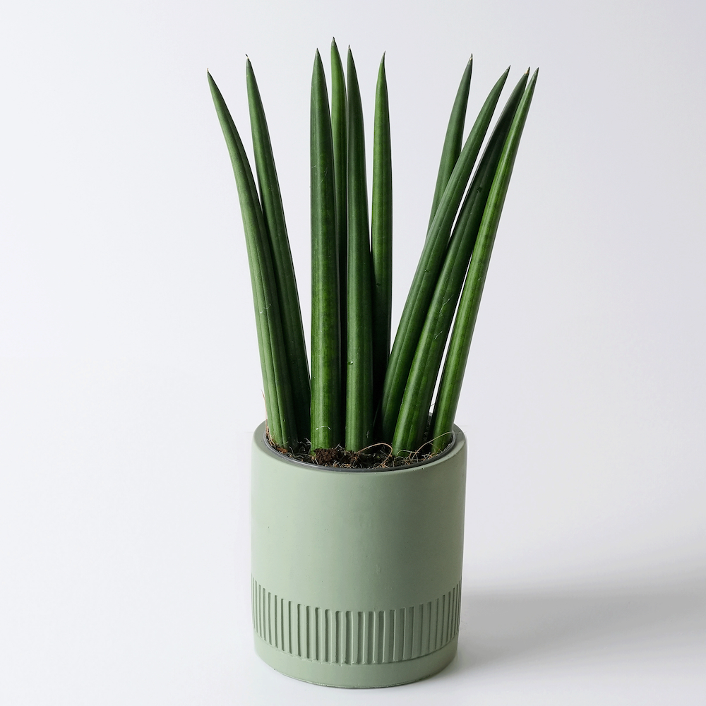 نبتة سانسيفيريا مرتبة في مبخر. تنمو في الداخل مع ضوء الشمس غير المباشر. تحتاج إلى حوالي 20 مل من الماء كل 15 يوم. الإرتفاع: 10 سم. العرض: 22 سم.