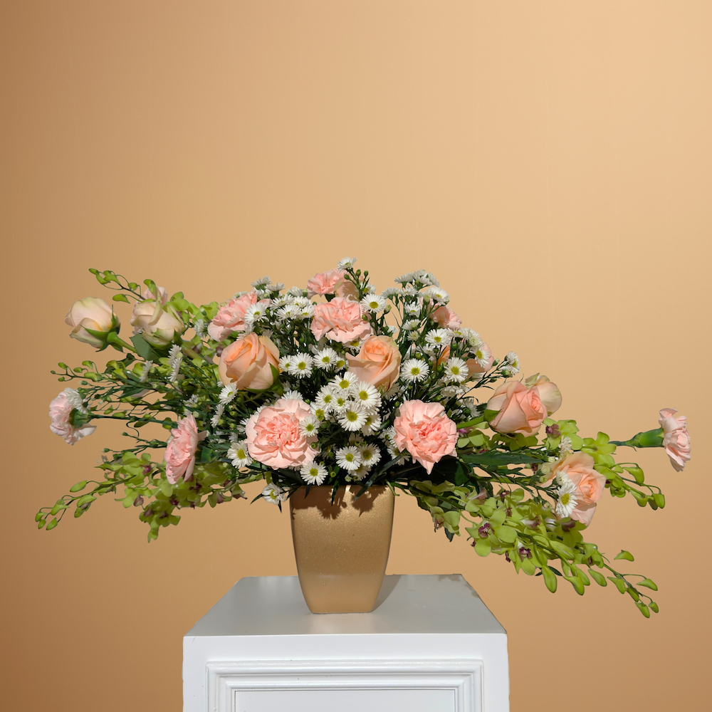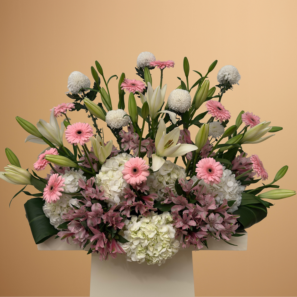 ستاند يحتوي على الليليز، الجيربيرا، الكريز، الهايدرنجا والالستروميريا.