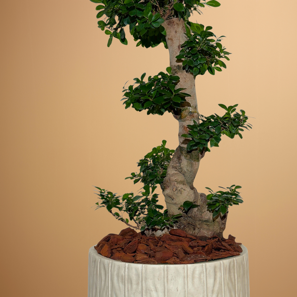بونساي فيكس جينسنغ موضوعة في بلانتر سيراميك أنيق تضيف للمكان لمسة طبيعية راقية ومظهرا هادئا وجميلا.