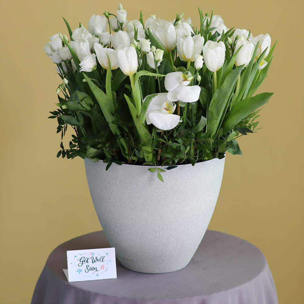 سلة مليئة بالبيبي روز الجميلة والجوري.