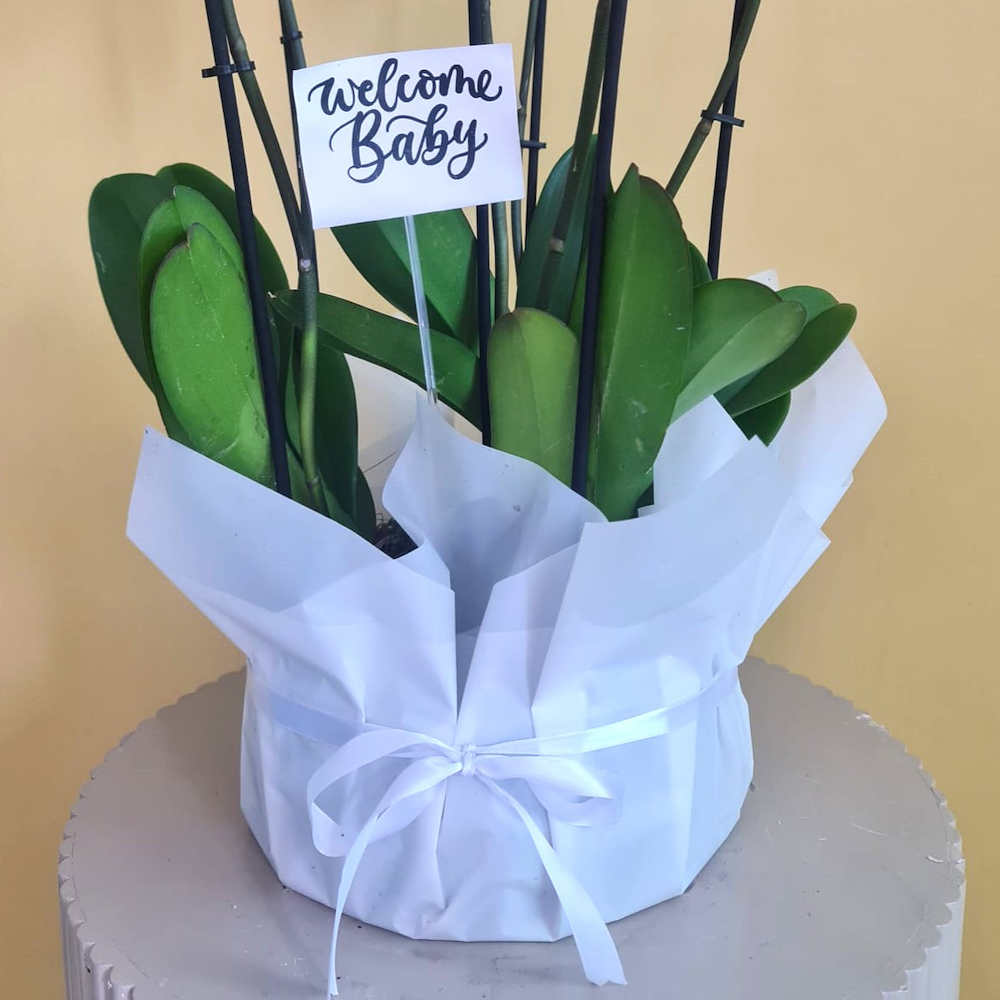 فازة تحتوي على نباتات الأوركيد باللون الأزرق.