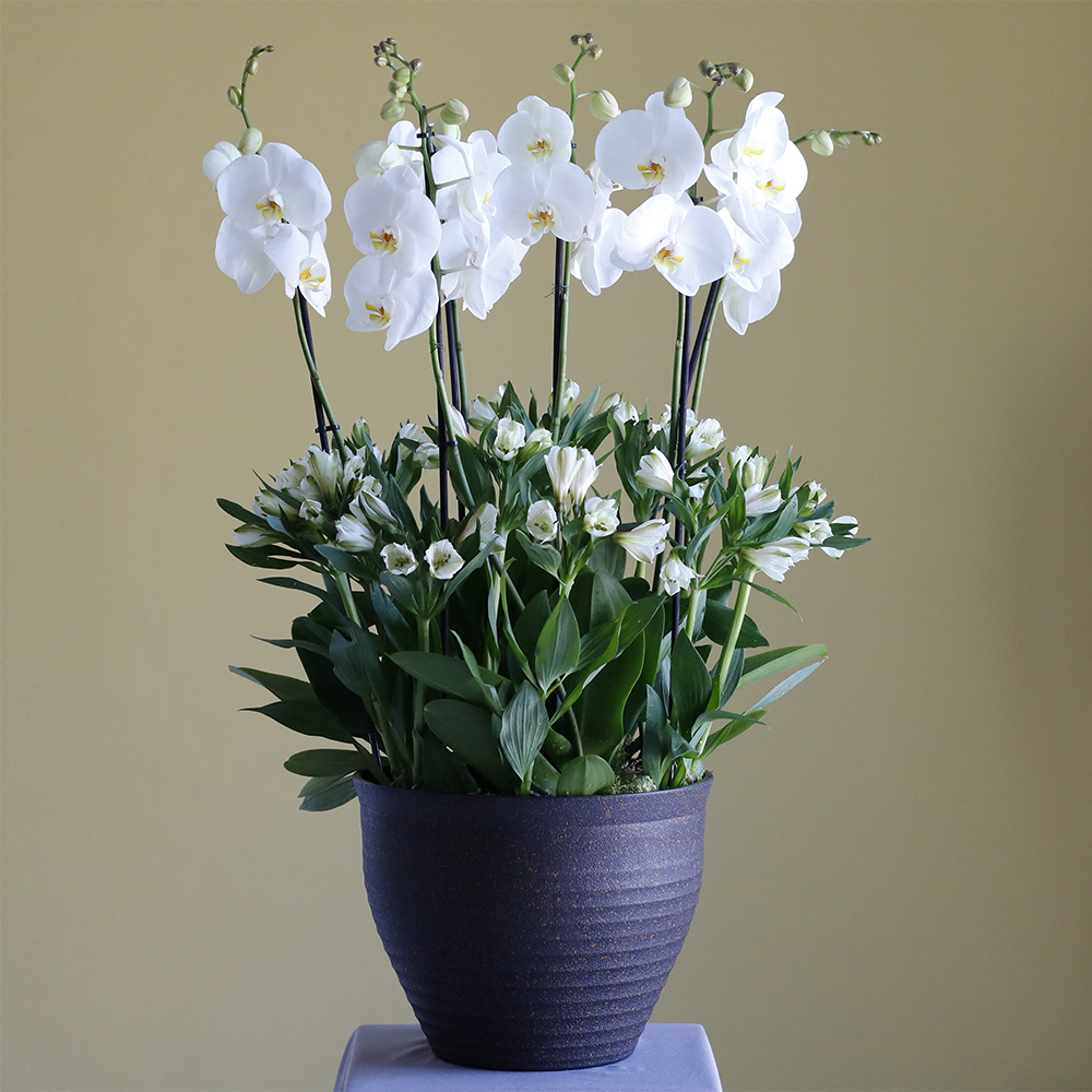 تحتوي هذه الباقة على زهور الألستروميريا، البيبي جوري، البيبي كريز، الهايدرينجا والبيوني، مرتبة بشكل جميل في فازة.