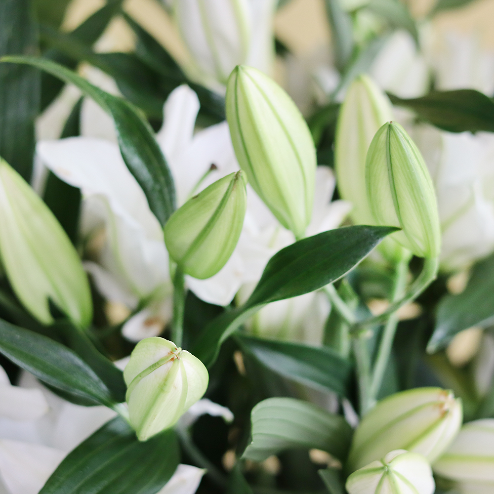 فازة مليئة بالليليز واوراق اليوكالبتوس.