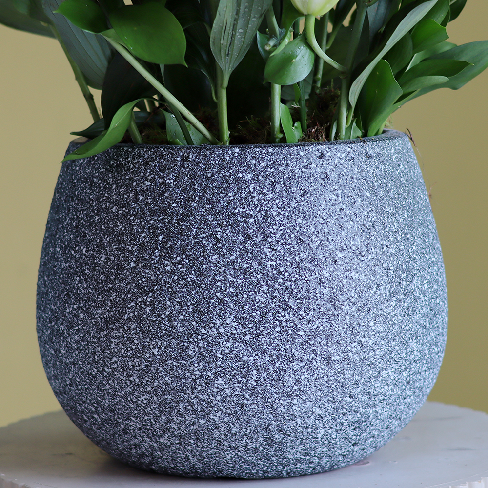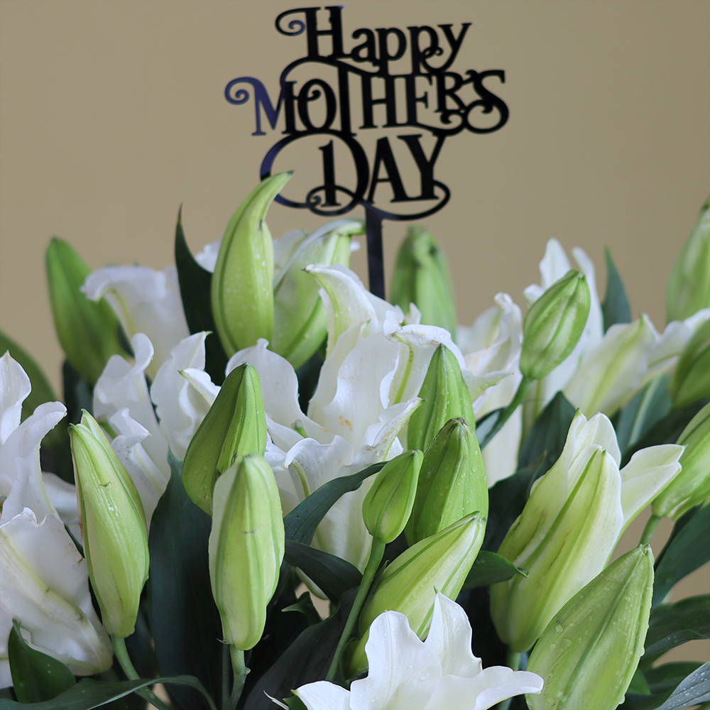 باقة تحتوي على زهور الكازابلانكا، مرتبة بشكل جميل في فازة فاخرة.