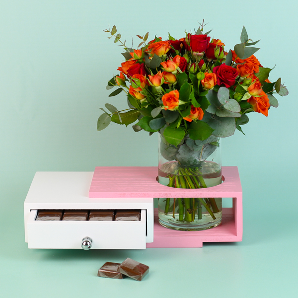 هذه الباقة تحتوي على مزيج من زهور الجوري مع الشوكولاتة.