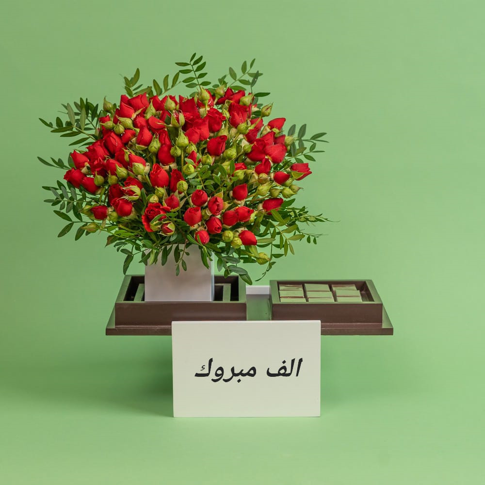 باقة تحتوي على الجوري مع الشوكولاتة.