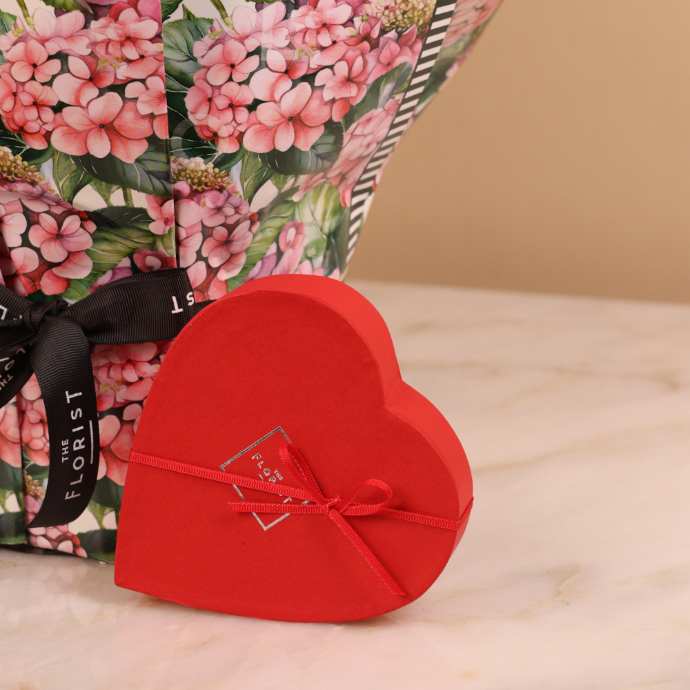 نبتة هايدرينجا وردية بجمالها المورق وتفاصيلها الناعمة، ترمز إلى نقاء قلب الأم وعمق محبتها. تم تنسيقها بعناية داخل تغليف فاخر يعكس الرقي، لتكون هدية مميزة تعبر عن الإمتنان في يوم الأم. تأتي مع علبة شوكولاتة فاخرة.