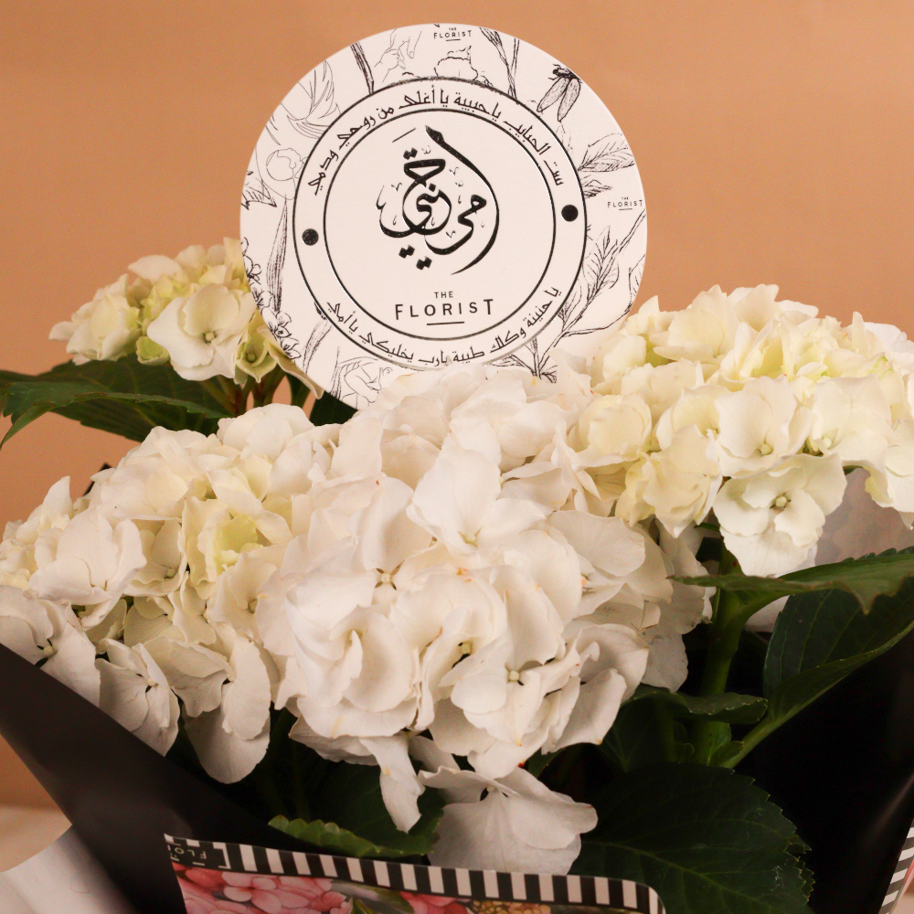 نبتة هايدرينجا بيضاء بجمالها المورق وتفاصيلها الناعمة، ترمز إلى نقاء قلب الأم وعمق محبتها. تم تنسيقها بعناية داخل تغليف فاخر، مع علبة شوكولاتة لتضيف لمسة من الدلال والإهتمام، لتكون هدية متكاملة تعبر عن الإمتنان في يوم الأم.
