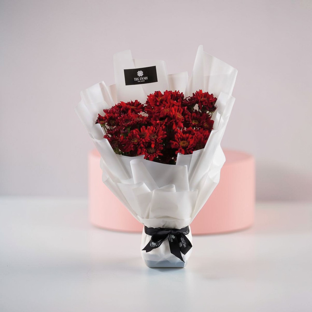 باقة يد منسقة بزهور الكريز بتغليف جميل ورائع.