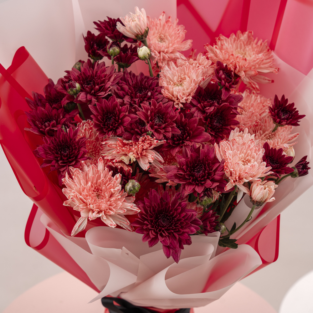 باقة يد منسقة بزهور الكريز بتغليف جميل ورائع.
