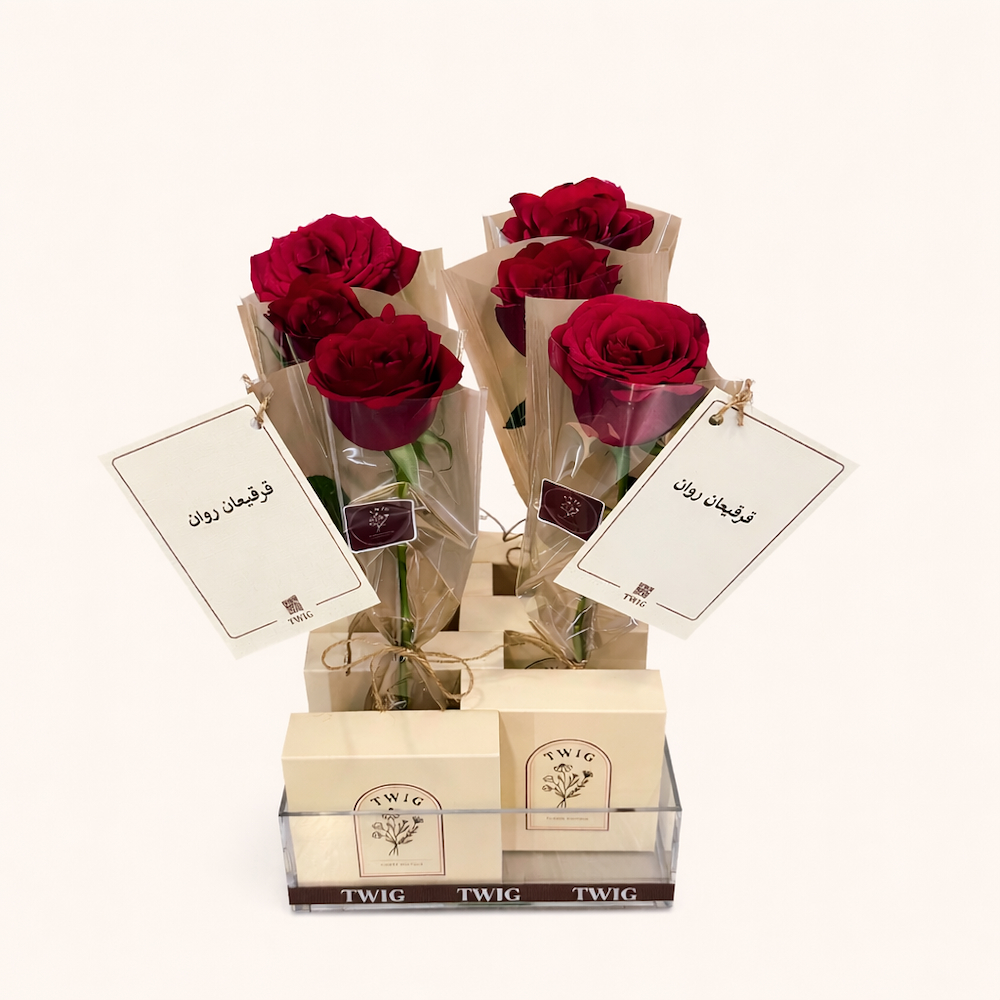 بوكس اكرليك و 6 اكياس حلاو الصيداوي و زهور.