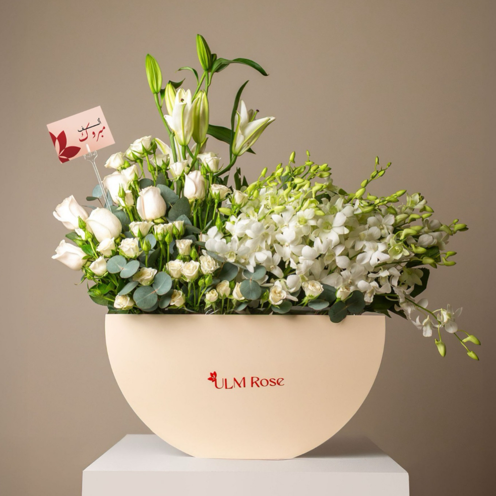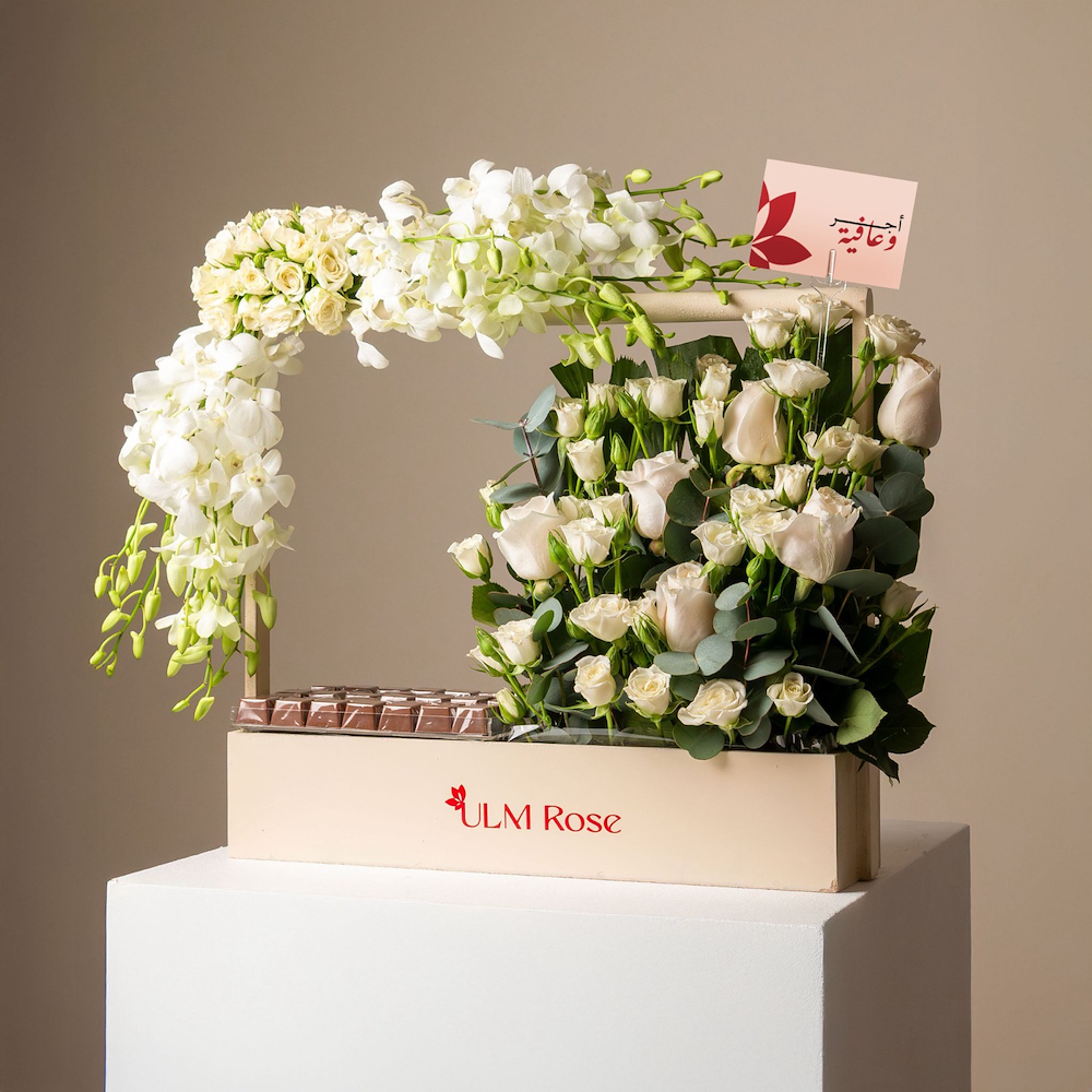 بوكس يحتوي على الجوري، البيي جوري، الاوركيد والليليوم.