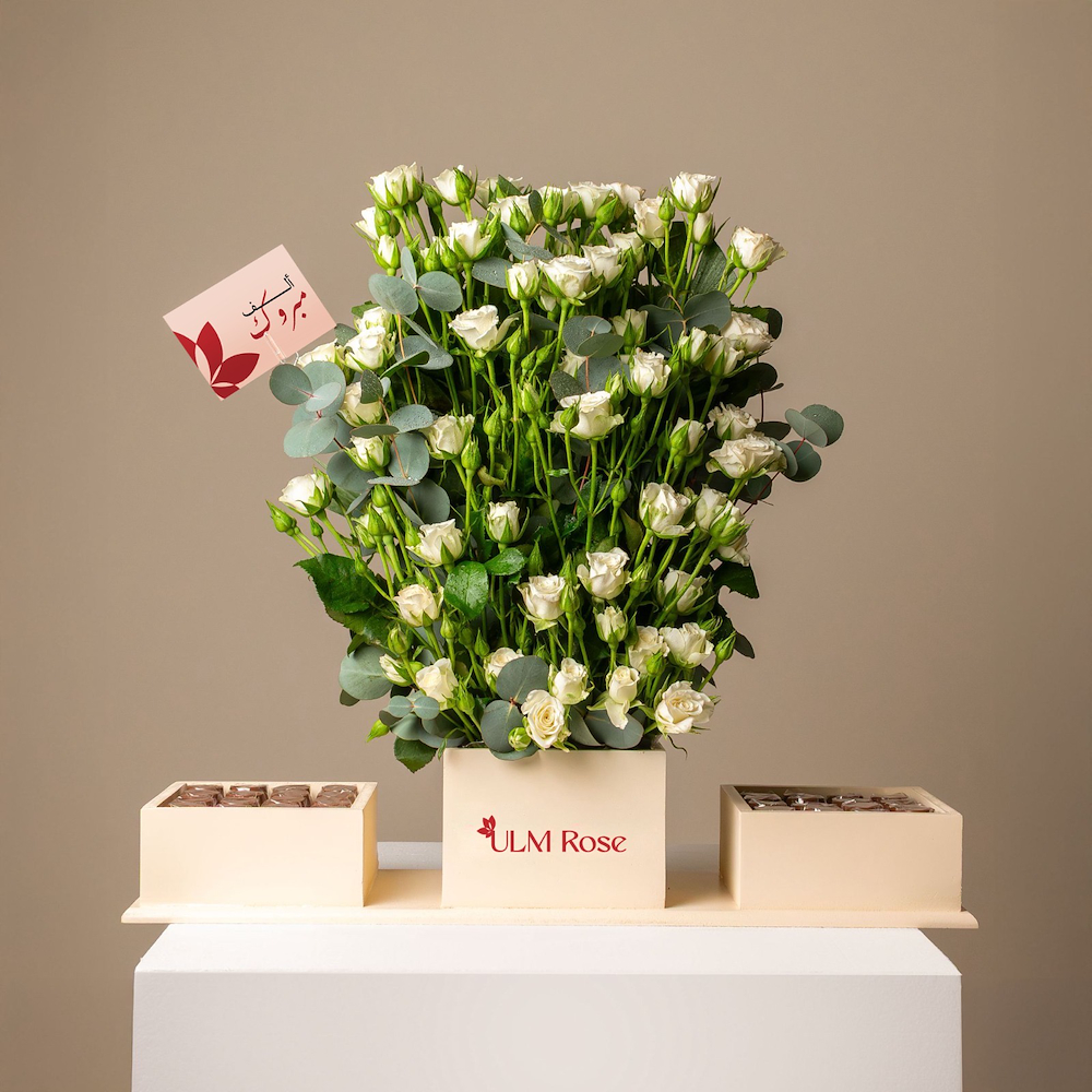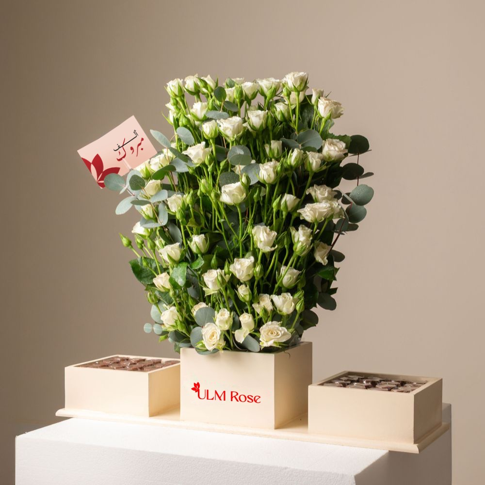 بوكس يحتوي على البيبي روز والأوكالبتوس مع الشوكولاتة البلجيكية.