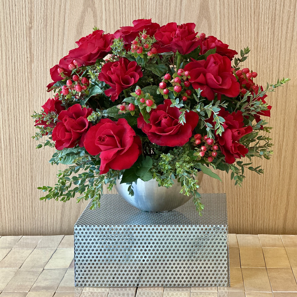 زهور الاوركيد في قاعدة خشبية مع لوح من البولي كربونات.