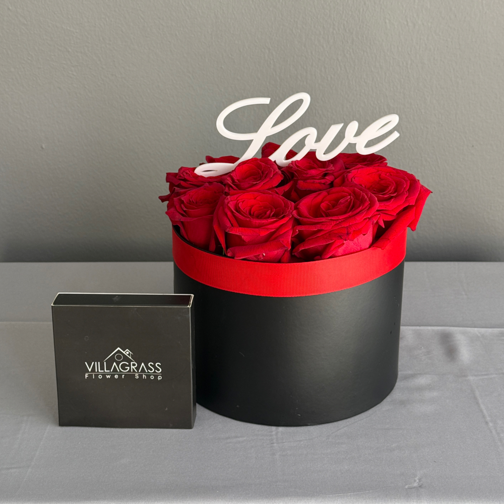 هذه الباقة تحتوي على زهور الجوري والأوركيد، ملاحظة ما يوجد في خلف البوكيه ليس من ضمن المنتج.