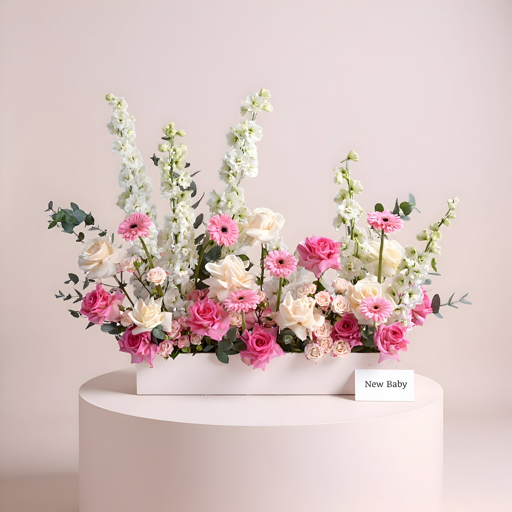 تشكيلة زهور مميزة من الأوركيد، الجيربيرا والبيبي جوري بتنسيقها الفريد. هدية قيمة لمشاركة الفرحة.