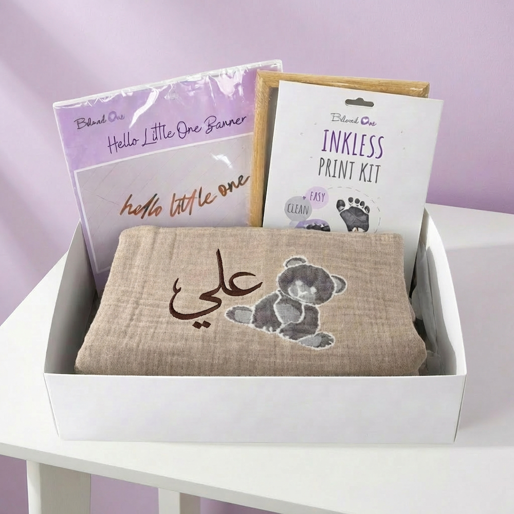 كيس نوم للمواليد الأولاد باللون الأزرق، مصنوع 100% من القطن، مع علبة تغليف مميزة، يمكنكم اضافة الإسم باللغة العربية أو الإنجليزية.