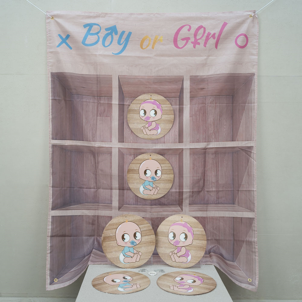 ستاند خشبي بتصميم عربة الطفل مزينة بالأغصان الجافة تحتوي على ملاءة الطفل، لعبة، وسادة، جوارب، وبيجامة الطفل.