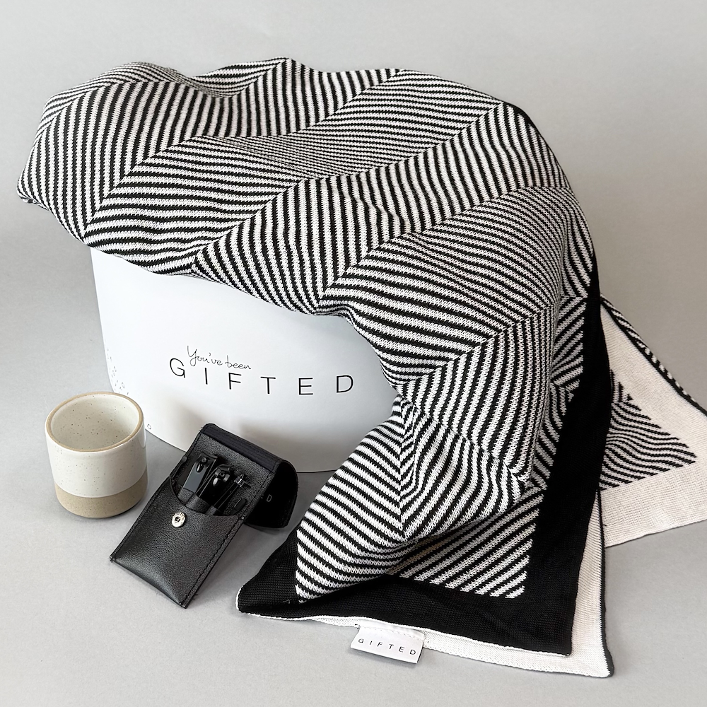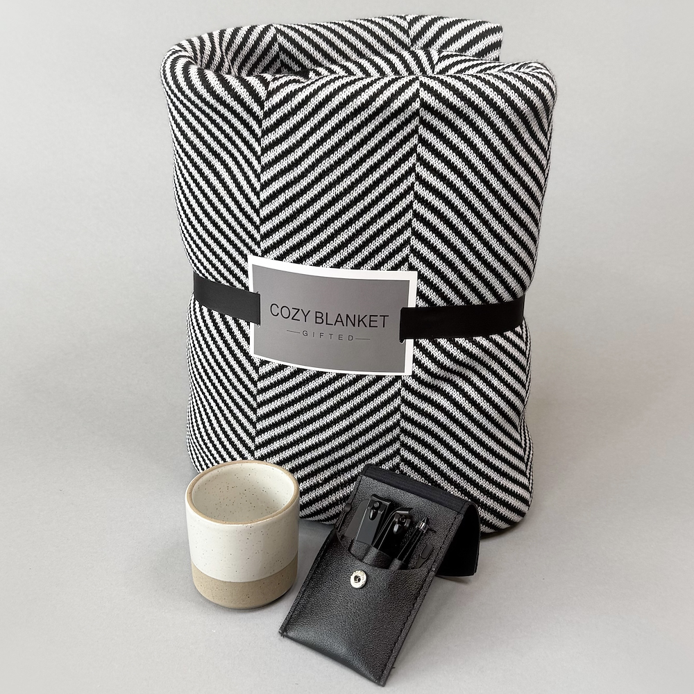 مجموعة مختارة بعناية مصممة للراحة اليومية، تضم بطانية 130cm x 200cm، فنجان اسبريسو، مجموعة عناية بالاظافر، لتشكل هدية عملية وسهلة تناسبه او تناسبها.