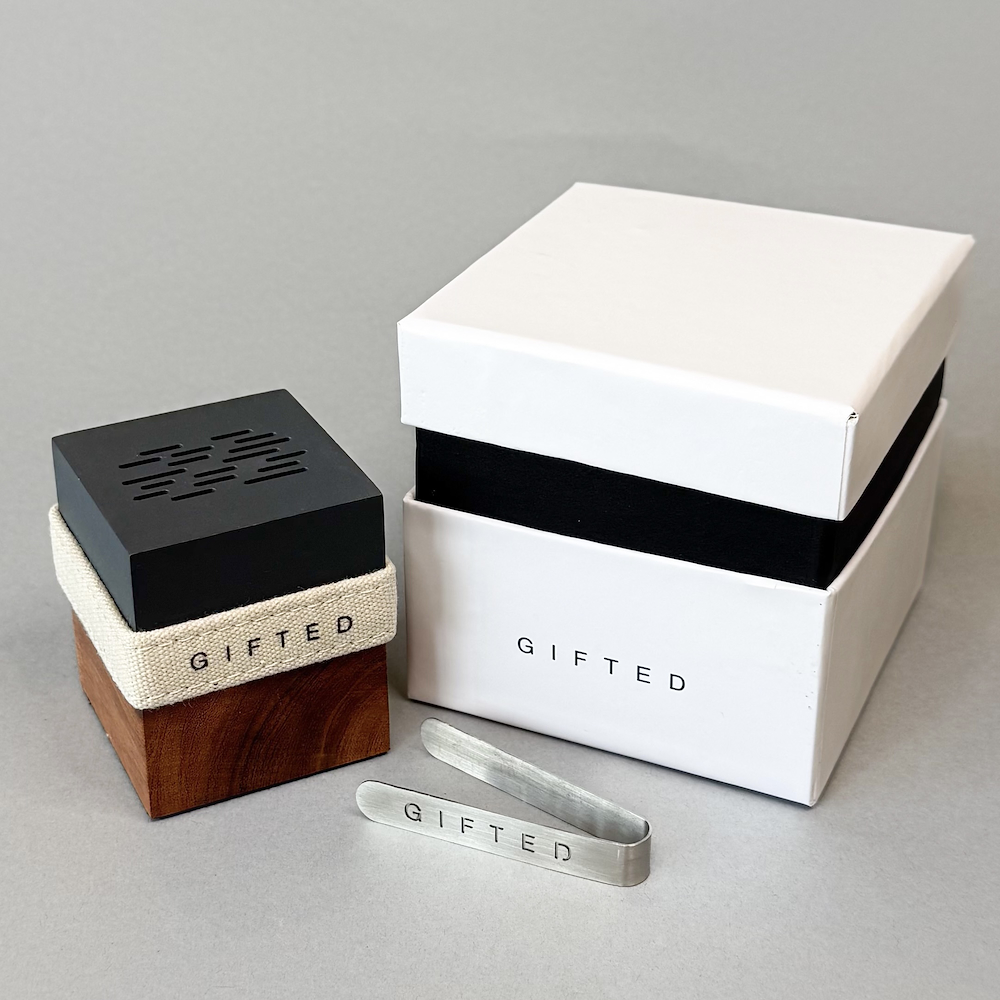 يتميز مبخرنا الصغير بتصميم خشبي عصري يضفي لمسة أنيقة على لحظاتكم اليومية. مزودة بحزام من القماش الأبيض وملقط فولاذي صغير، وتأتي في علبة هدايا بيضاء مميزة تحمل شعارنا.