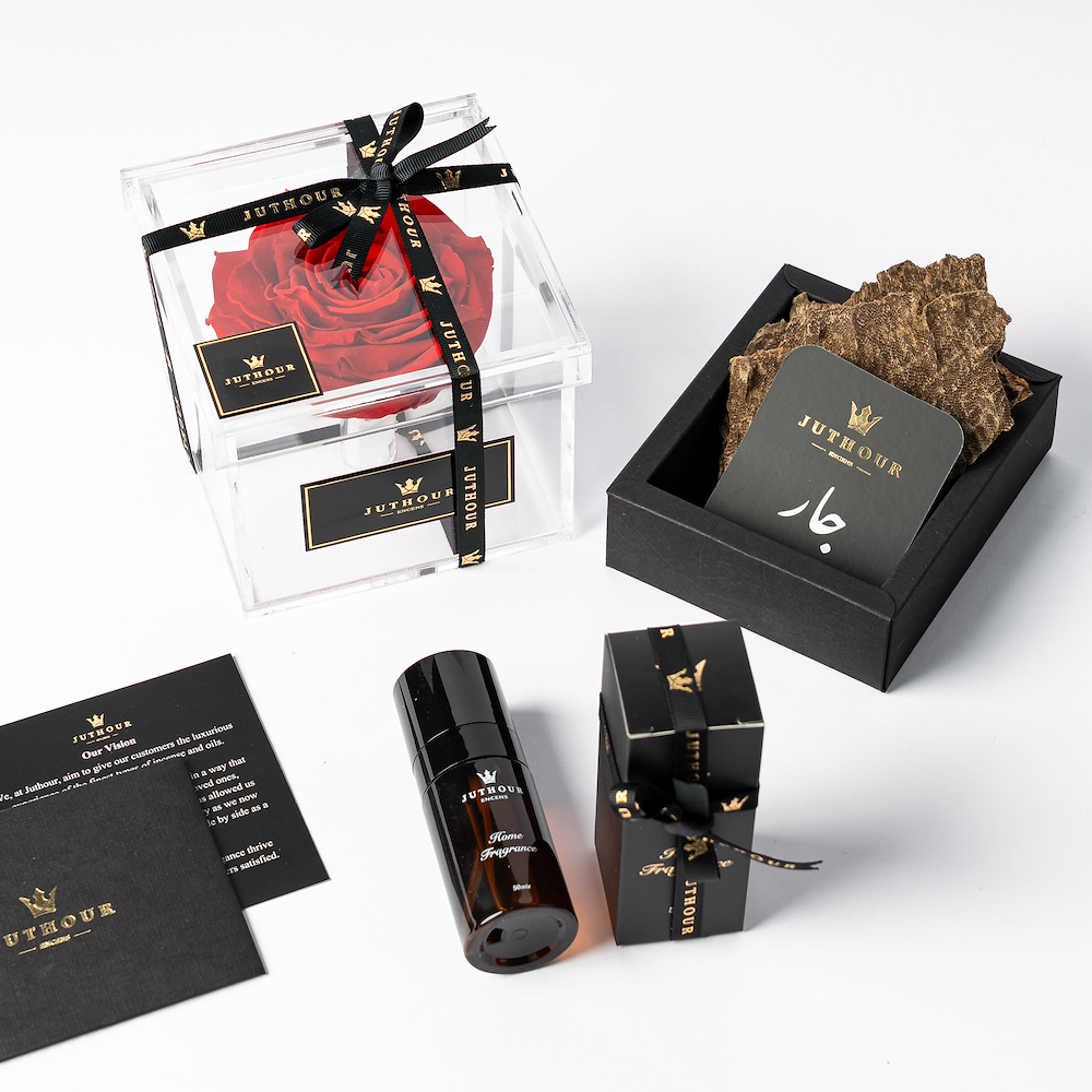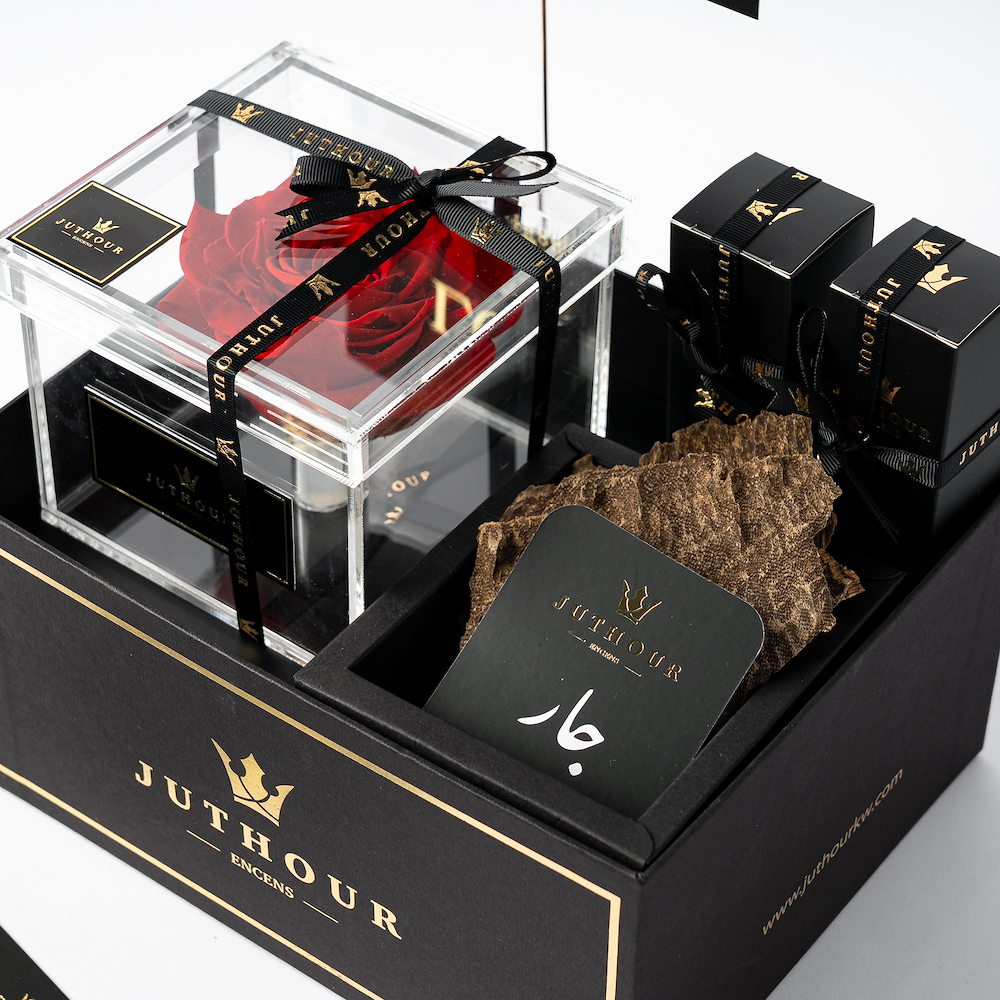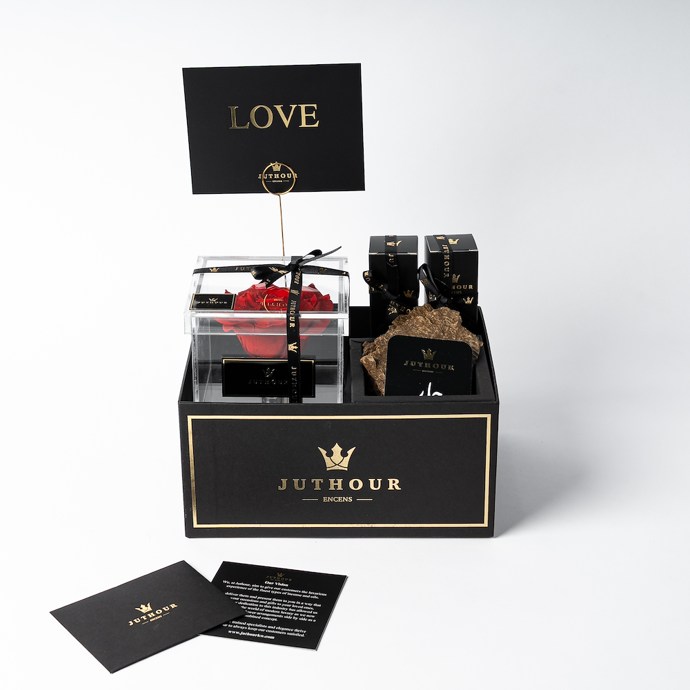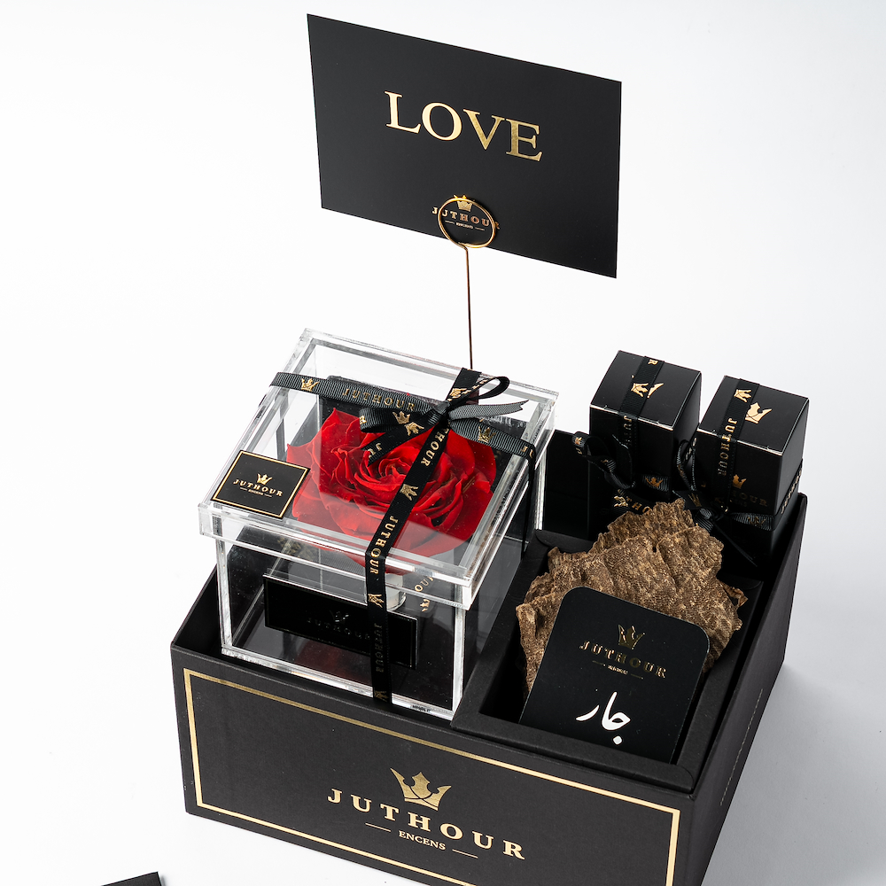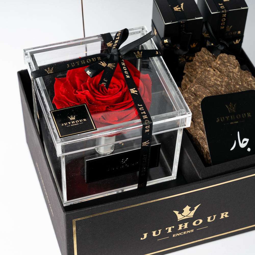 صندوق سيزونال فورافر من جذور يقدم لك الهدية المثالية لمناسبة الحب، مع زهرة حمراء دائمة أنيقة، بالإضافة إلى 1 توله من البخور الفاخر جار، و عدد 2 بخاخات من أكثر الانواع مبيعًا بحجم 50 مل. بالاضافة الى بطاقة المناسبة وبطاقة الاهداء الشخصية.