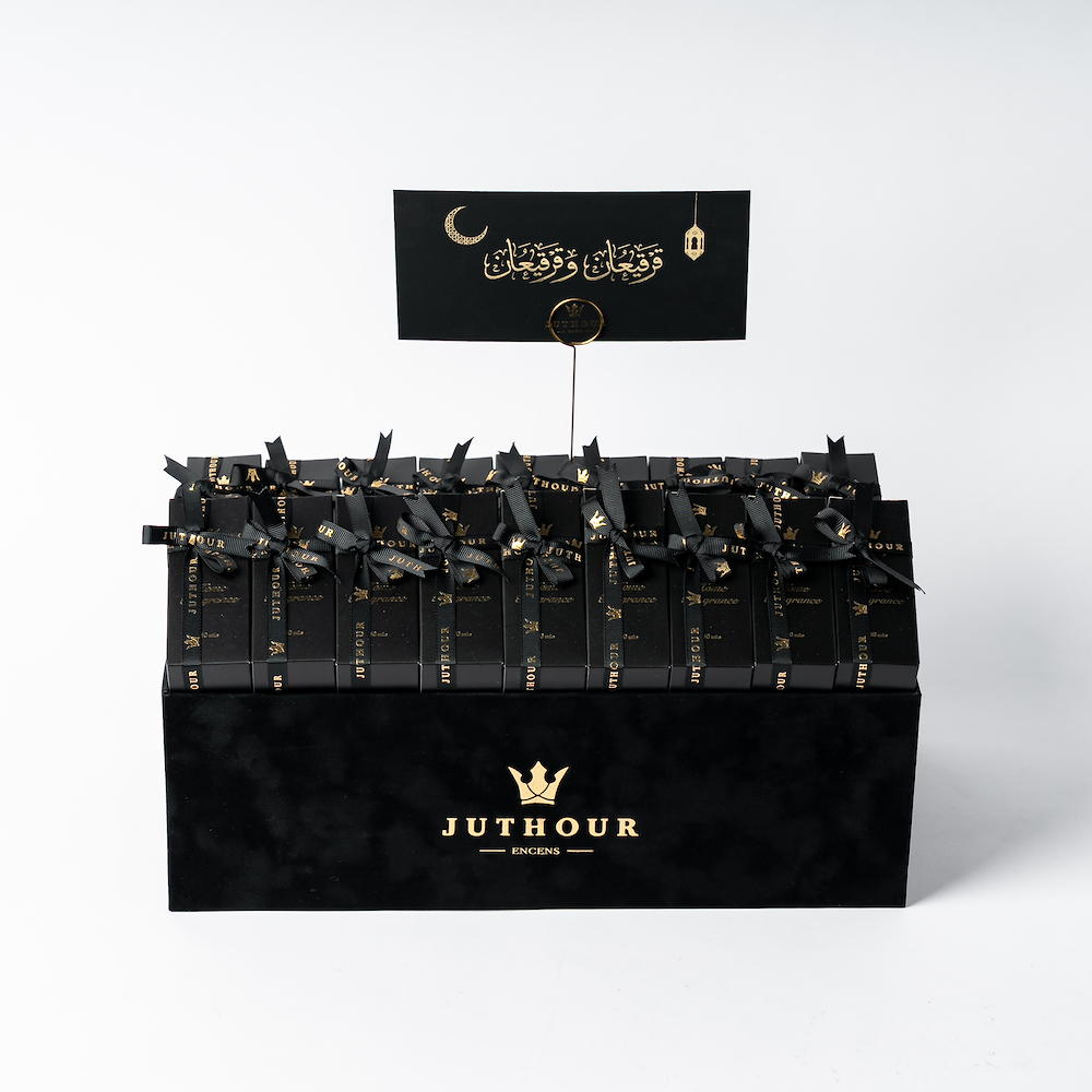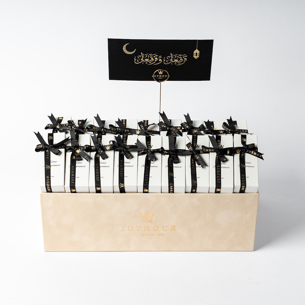 يحتوي هذا الصندوق الرائع على 3 تولات من المعمول، برائحة قوية ومميزة. كما يحتوي على مرش بخور الأكثر مبيعاً بحجم 300 مل، زهرة جوري وردية فاخرة محفوظة و3 مل من المسك الأبيض الفاخر، بالإضافة إلى 3 مل من المسك الصيفي الأزرق. كما يأتي الصندوق مع بطاقة هدايا أنيقة وبطاقة معايدة، مما يجعله الخيار الأمثل لأي مناسبة خاصة.