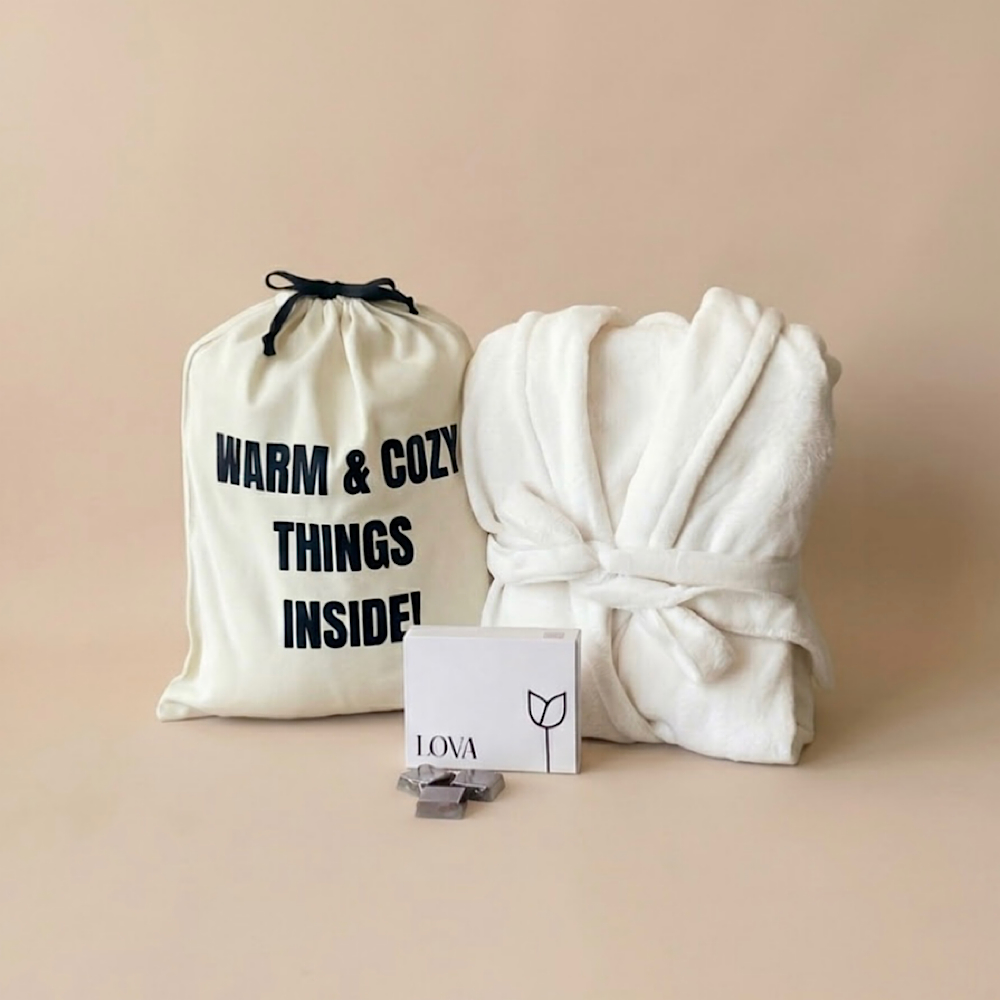 المنتج يحتوي على روب مناسب لمقاس صغير ووسط مع علبة شوكولاتة.