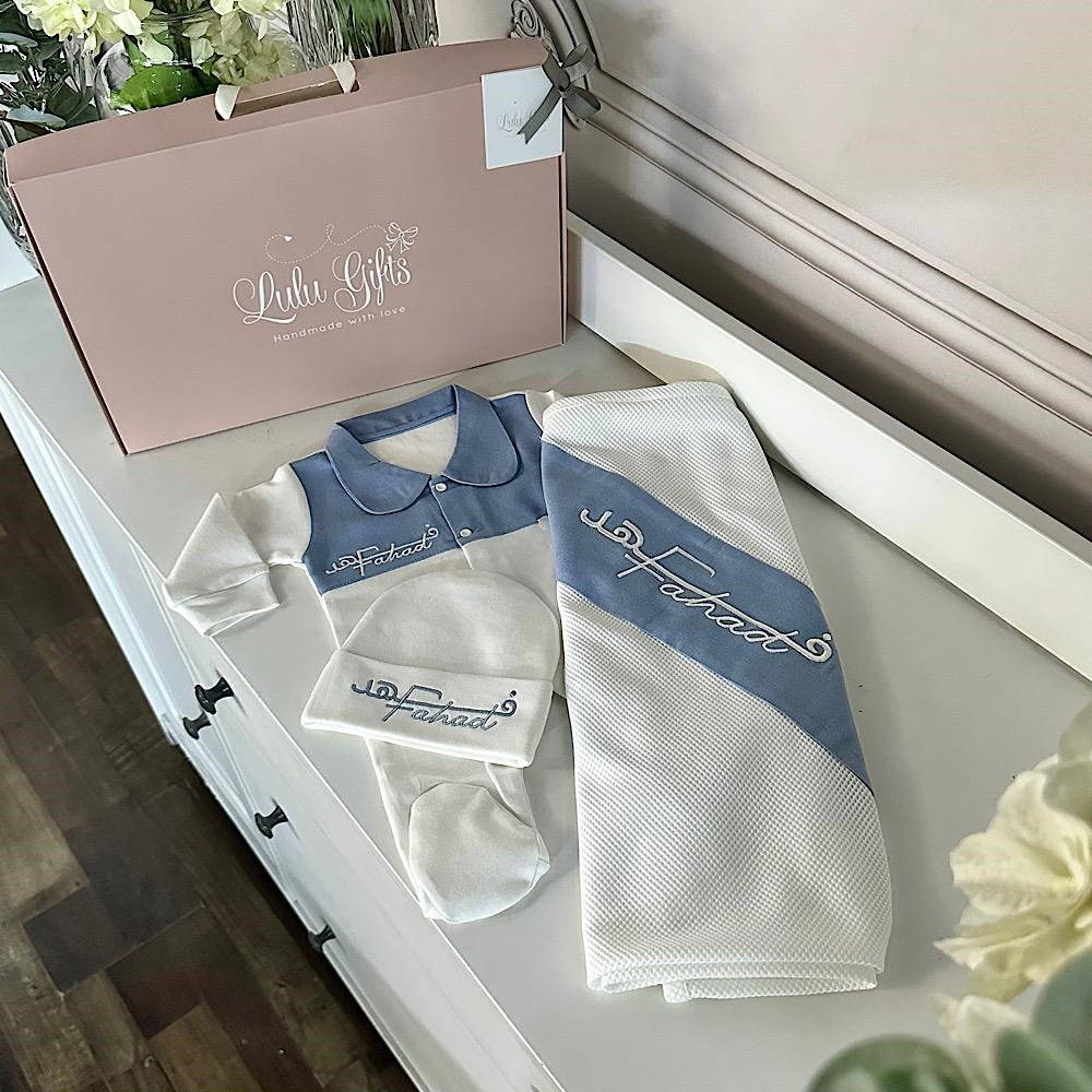 مجموعة من خام القطن واللينن من تبان، قبعه ولفه، المقياسات المتوفره 0-1 شهر، 1-3 شهور و 3-6 شهور.