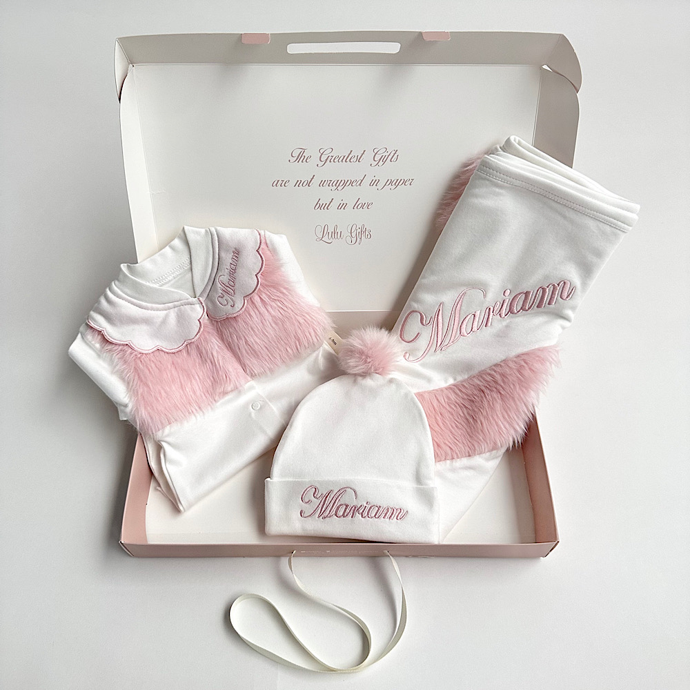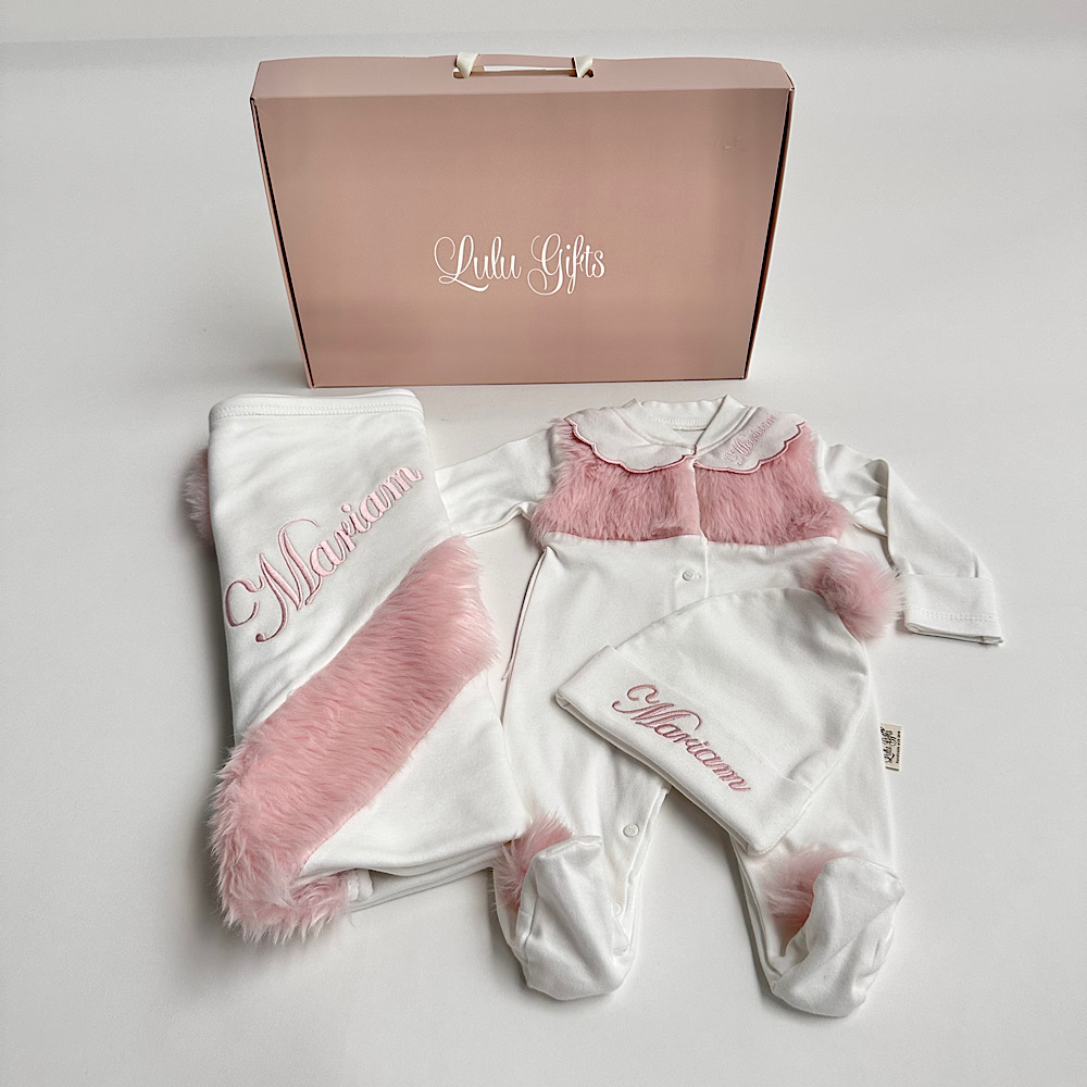 تحتوي هذه المجموعة على قبعة، بدلة أطفال وبطانية خفيفة. القماش من القطن والفرو، وهي مناسبة للأطفال من عمر شهر إلى 3 أشهر، ومن عمر 3 إلى 6 أشهر.