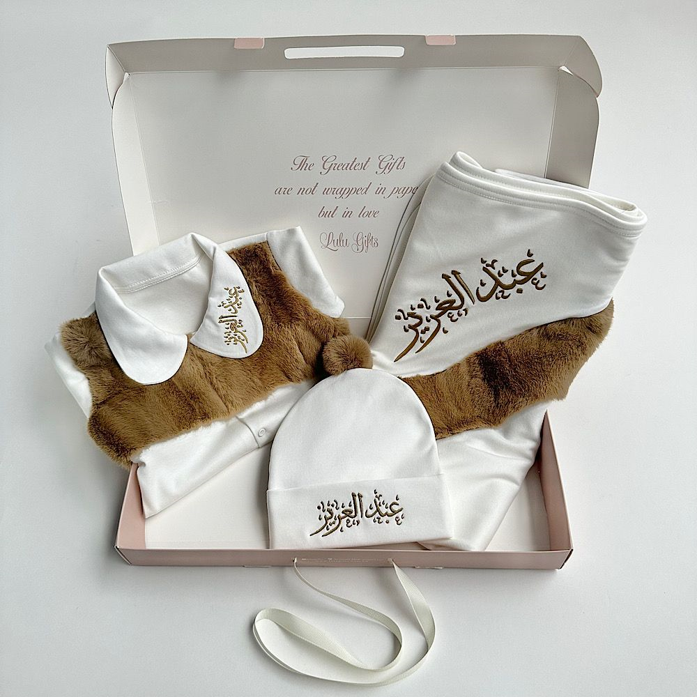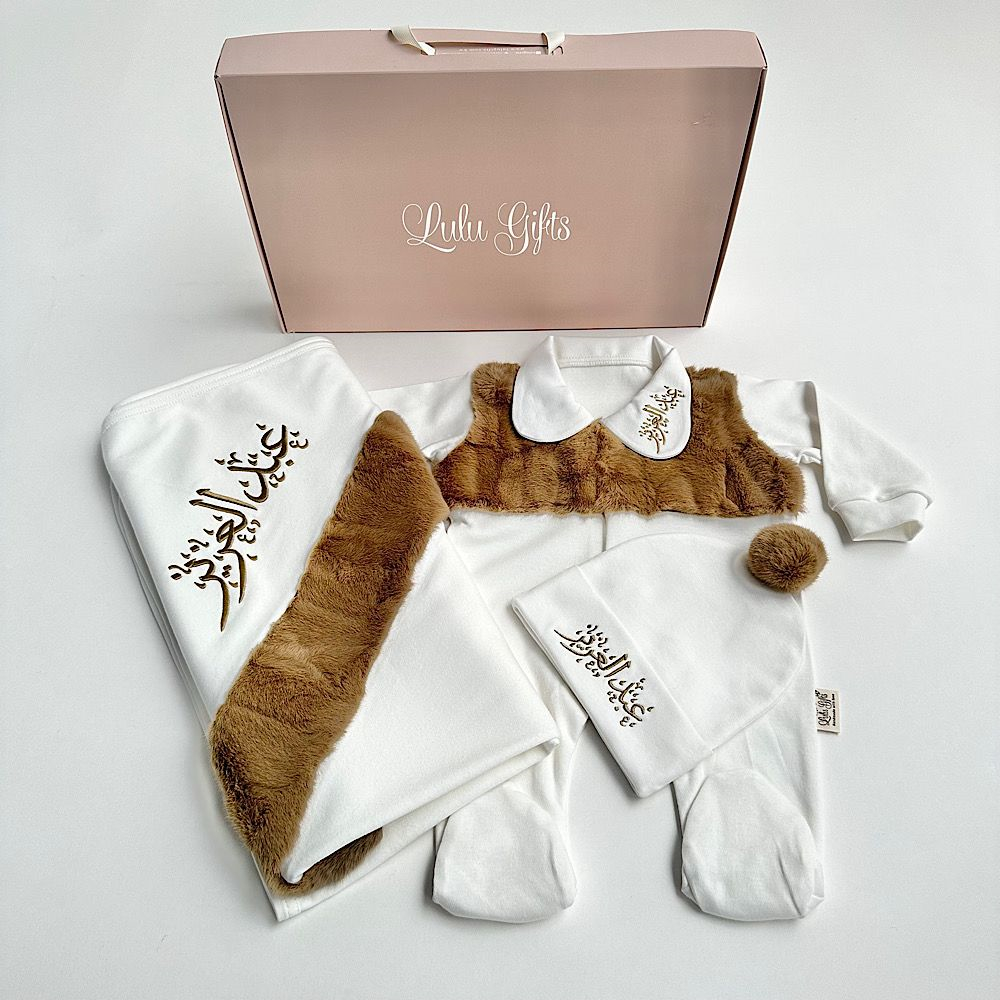 يحتوي هذا طقم الأطفال على قبعة، وبدلة طفل، وبطانية ناعمة. القماش مصنوع من مزيج القطن والفرو، وهو مناسب للأطفال من عمر 1–3 أشهر ومن 3–6 أشهر.