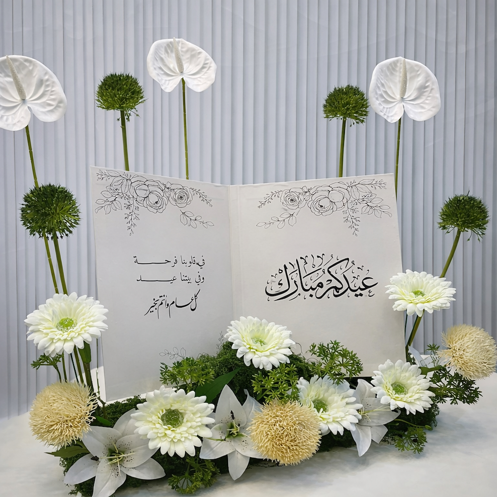 بطاقات زفاف قطنية فاخرة تتكون من 3 كروت مع تغليف أنيق وتشمل: رسالة بالتاريخ والأسماء. رسالة عن الأعوام. رسالة بالتاريخ (التقويم).