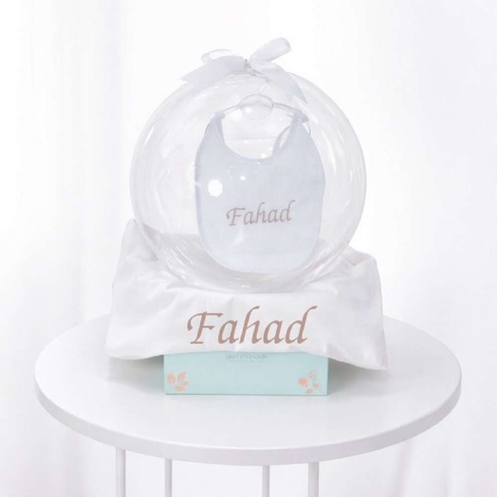 مجموعة التوزيعات تحتوي على 14 بروشات مع تغليف مميز في صندوق خشبي مع بالونات ، تخصيص الإسم على الصندوق.