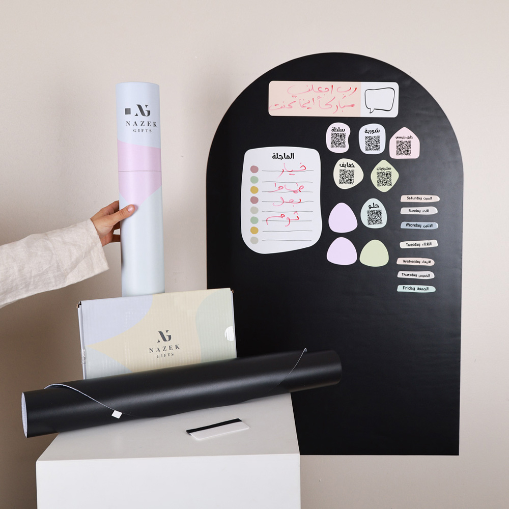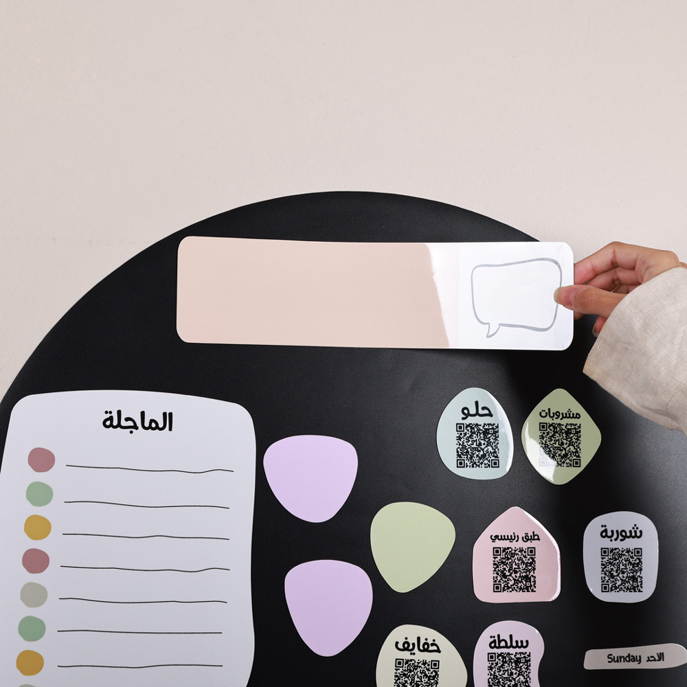 لوحة حائط مغناطيسية رمضانية تساعدك على تنظيم وجبات الأسبوع بكل سهولة. تحتوي على وصفات مختارة من أشهر الطباخات، وباركود كيو آر لعرض خطوات التحضير مباشرة. تصميم عملي يسمح لك بكتابة جدول الطبخ وتتبع المهام اليومية خلال رمضان، بطريقة مرتبة وسهلة الاستخدام.