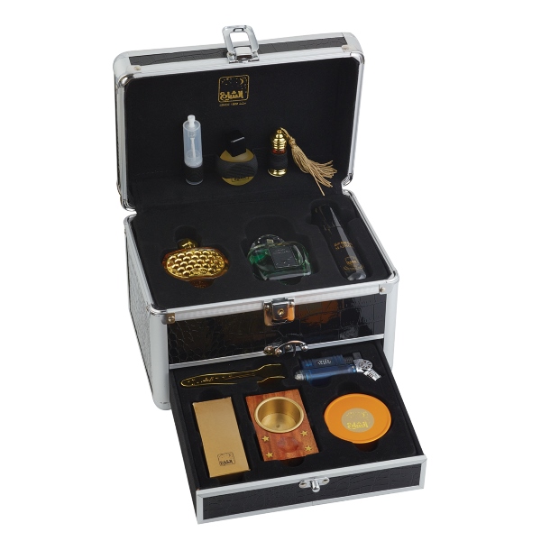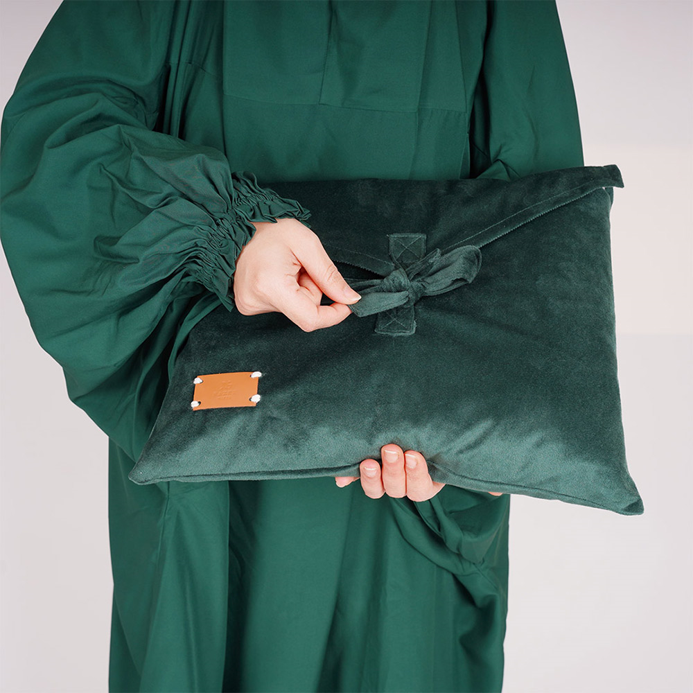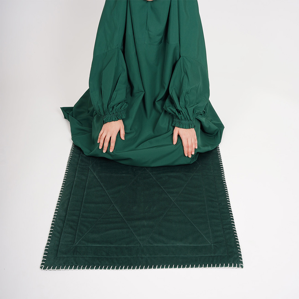 مجموعة من ثوب الصلاة، حقيبة، وسجادة الصلاة مطرزة يدويًا. السجادة مناسبة للتنظيف الجاف فقط. طول الثوب: 198 سم. مقاس السجادة: 110*70 سم.