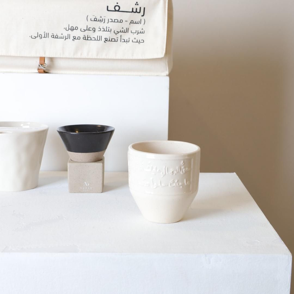 منتج أنيق لعشاق القهوة، بلمسة يدوية فريدة، مثالي للإستخدام اليومي أو كهدية راقية. يتضمن 4 أكواب بتصاميم وأحجام مختلفة تناسب جميع الأذواق. محتويات المجموعة: - كوب سيراميك بتصميم مميز وفتحة جانبية (300 مل). - كوب طيني مخروطي الشكل مصنوع يدوياً بقاعدة (100 مل، أسود). - كوب طيني مصنوع يدوياً (250 مل) مزين بعبارات مميزة. - كوب سيراميك عالي الجودة بسطح أملس، وألوان عصرية، ونقوش بارزة أنيقة (240 مل).