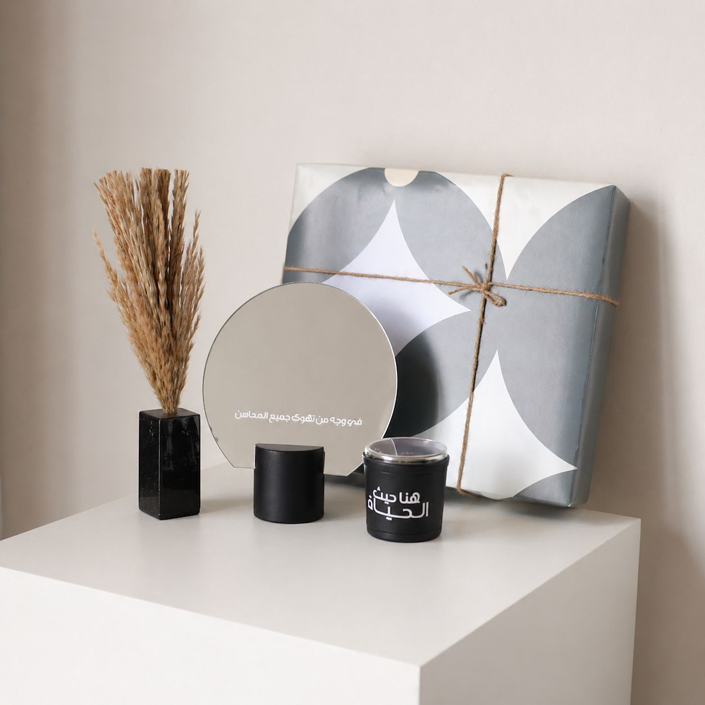 تحتوي مجموعة القهوة على حقيبة أنيقة من الجلد، مطارة قهوة ميني بسعة 500 ملي من الستانلس ستيل مزدوج الجدار تحافظ على المشروبات ساخنة لمدة تصل إلى 6 ساعات، وعلبة معدنية تحتوي على فنجانين للقهوة العربية.
