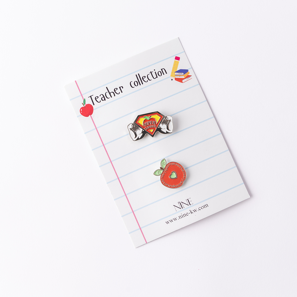 بروش معدني انيق بتصميم خاص ليوم المعلم عدد اثنين هدية مميزة للتقدير المعلم.