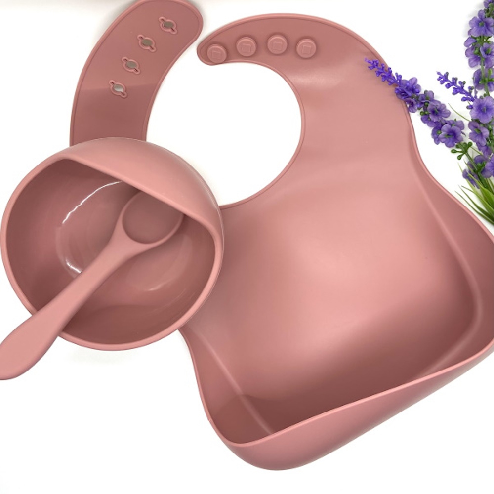 هذه المجموعة تحتوي على بدلة نوم مع سحاب مصنوعة من 100% القطن العضوي ومجموعة إطعام الطفل الوردية مكون من 3 قطع (صدرية وملعقة وصحن) مصنوع من السيليكون الخالي من ال BPA. هذه المجموعة مناسبة لطفل عمره 18 شهر.