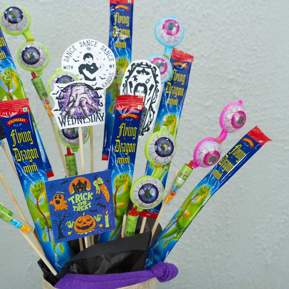 حقيبة بتصميم الهالوين تحتوي على 12 قطعة من الحلوى.