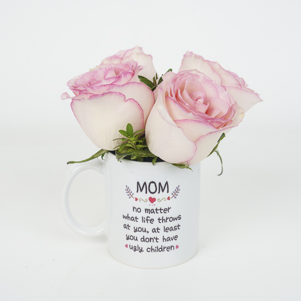 كوب مخصص مملوء بزهور الجوري.