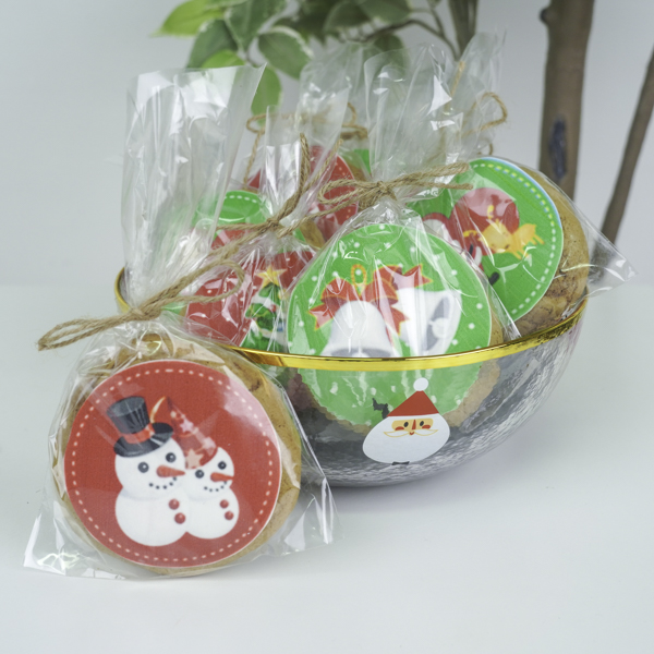 وعاء زجاجي مزين برسومات مملوء بالكوكيز.