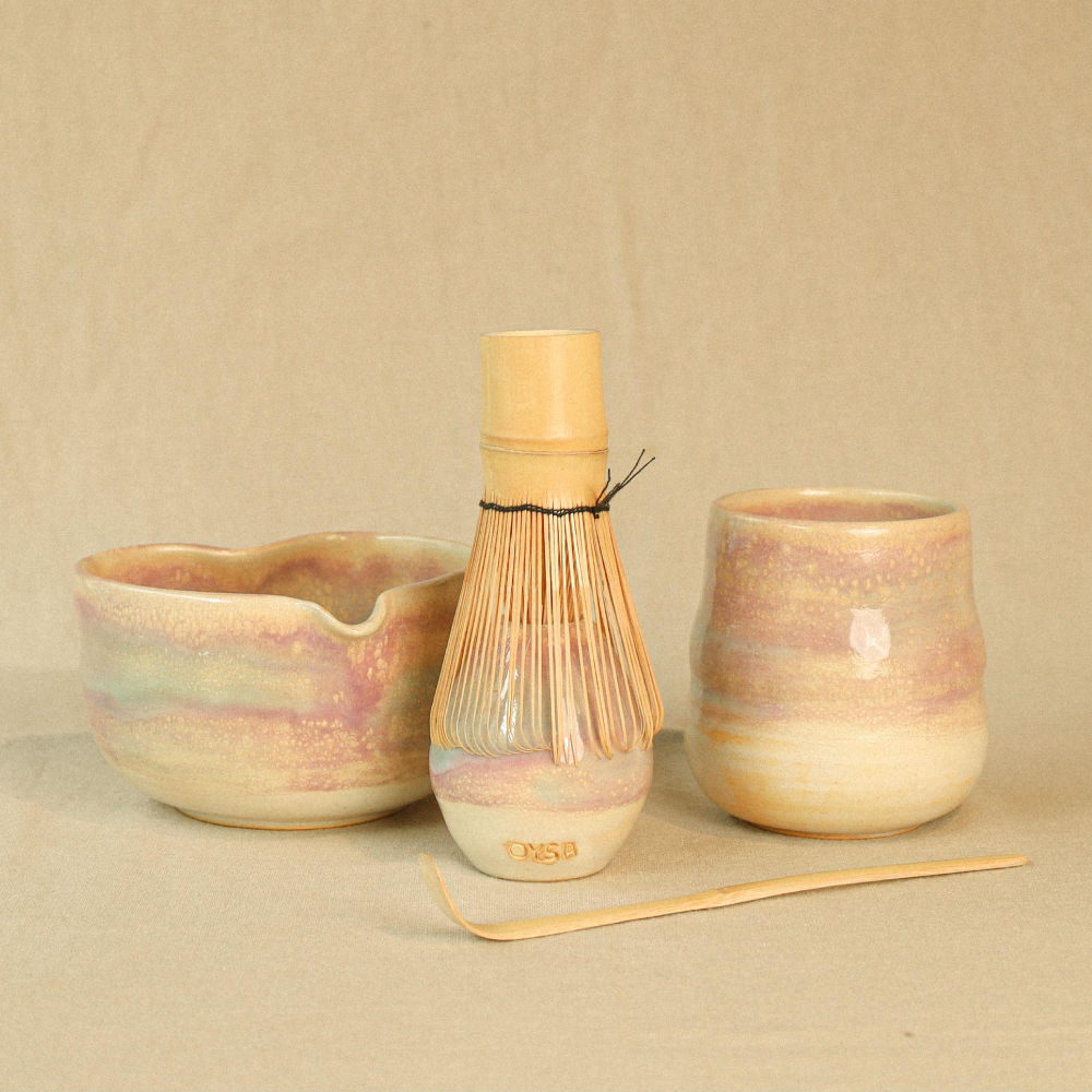 مجموعة ماتشا مصممة ومصنوعة يدويًا بإليسا، مستوحاه من روح السيراميك الفيتنامي العريق، حيث يلتقي الهدوء بالحرفة. كل قطعة تحمل بصمة العمل اليدوي وتفاصيلها الفريدة. تأتي داخل علبة أنيقة مغلفة بزهور مجففة طبيعية.