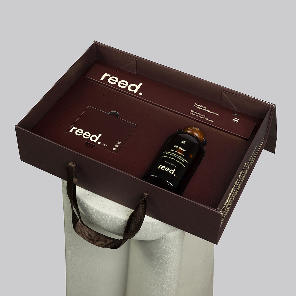 فواحة فاخرة مع أعواد خشبية بسعة 500 مل، بتصميم أنيق وانتشار يدوم طويلاً، مع إمكانية الحفر على الغطاء بالأحرف العربية أو الإنجليزية مكونات العطر: عطر فاخر وعميق يبدأ بمزيج منعش من النعناع والهيل والزعفران، تتناغم معه لمسات البرغموت، ويستقر على قاعدة غنية من خشب العود والباتشولي تمنحه ثباتًا وفخامة واضحة.