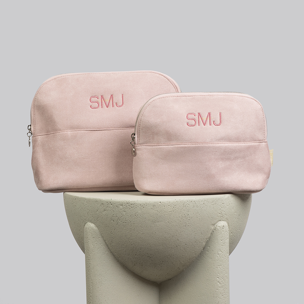 مجموعة أنيقة من حقيبتين بحجم متوسط وكبير، مثالية للسفر أو لتنظيم مستحضرات التجميل. يمكن تخصيص كل حقيبة برسم الأحرف الأولى من إسمك أو الإسم المختار، مما يضفي لمسة من الأناقة والتميز.