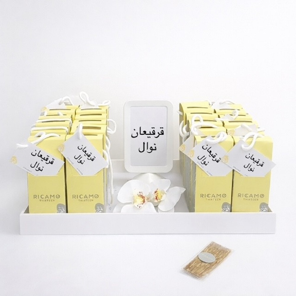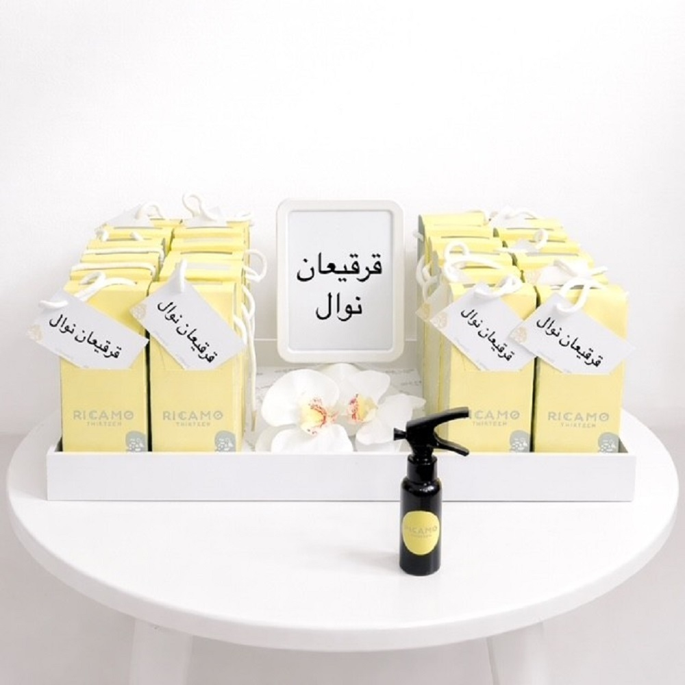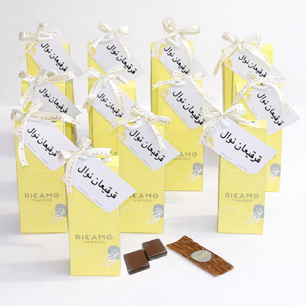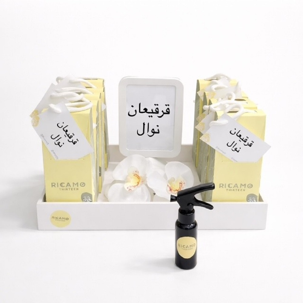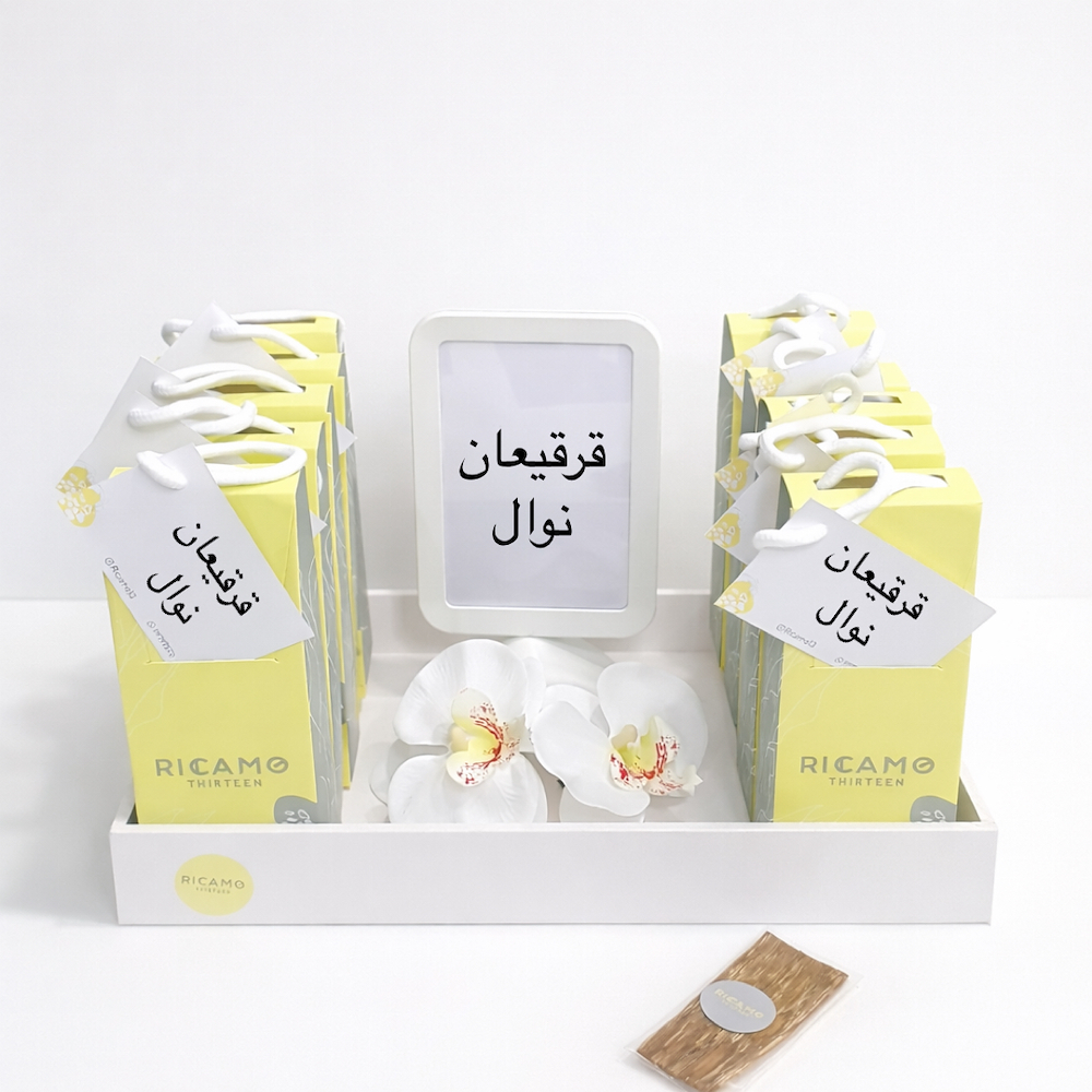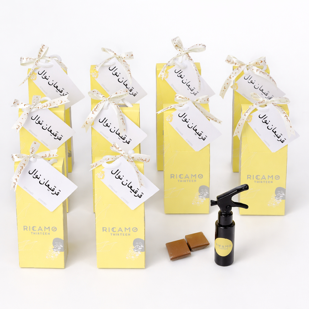 مجموعة تضم 10 شوكولاتة ومعطر منزلي برذاذ قرقيعان، مع بطاقة إهداء لكل هدية.